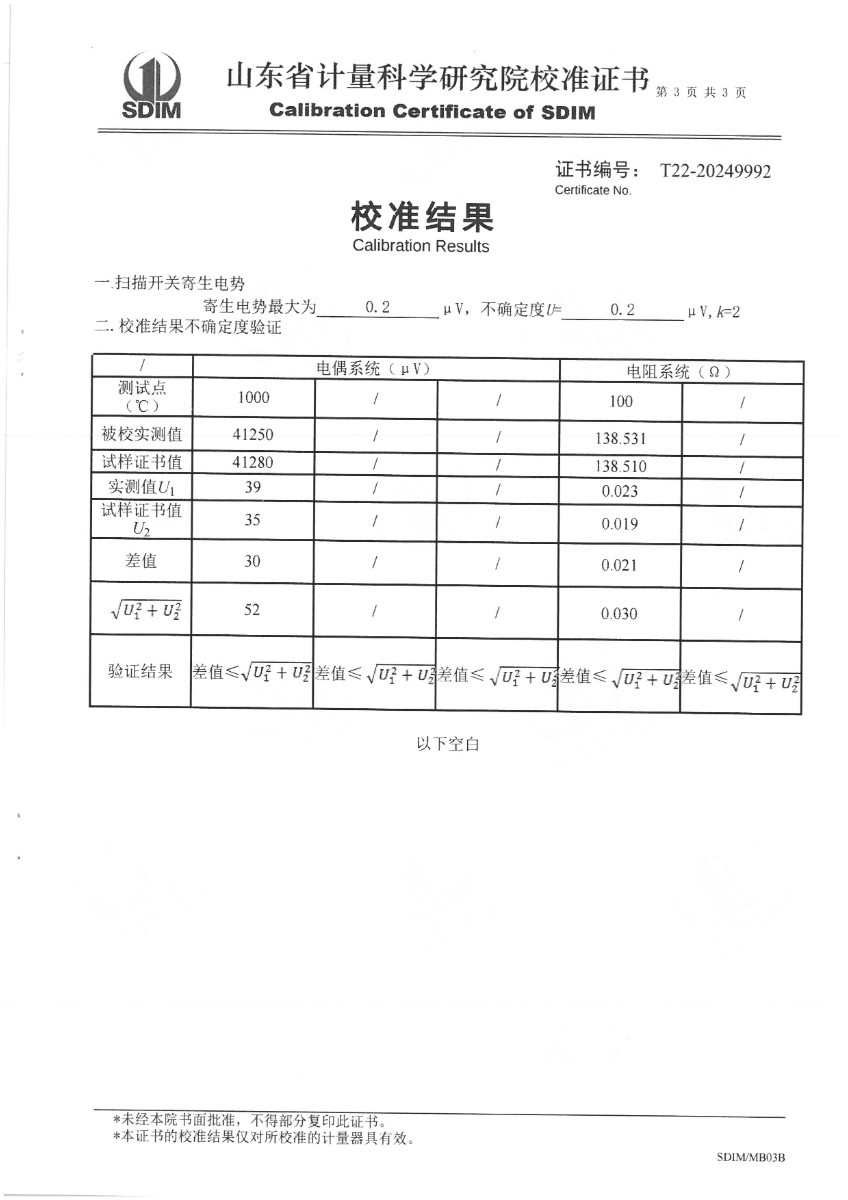 上一條:熱電偶檢定爐校準(zhǔn)證書 | 下一條:便攜式干體爐(-30-150℃)校準(zhǔn)證書 |