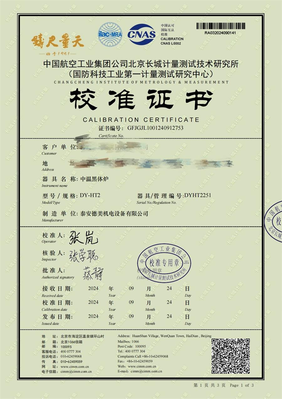 中溫黑體爐(50-500℃)校準證書 2024-10-17 本文被閱讀 5266 次