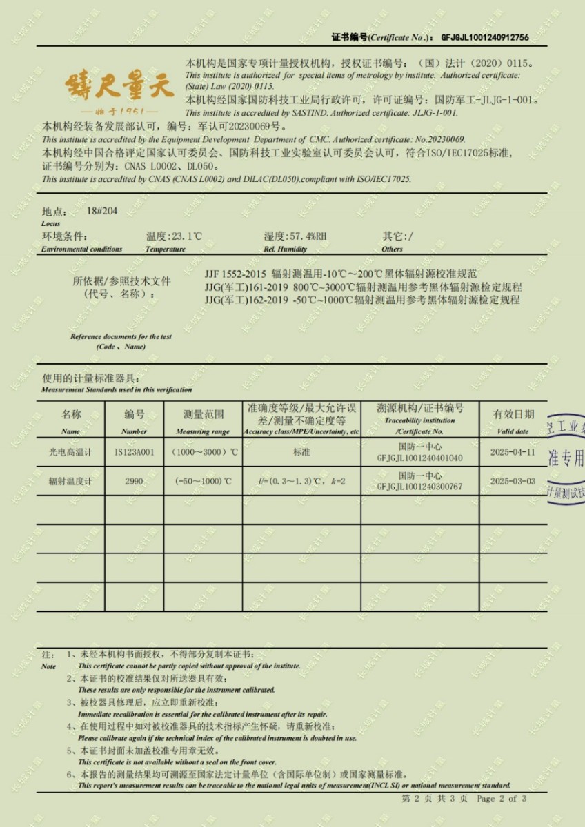 上一條:中溫黑體爐(50-500℃)校準(zhǔn)證書 | 下一條:超低溫面源黑體爐(-40-80℃)校準(zhǔn)證書 |