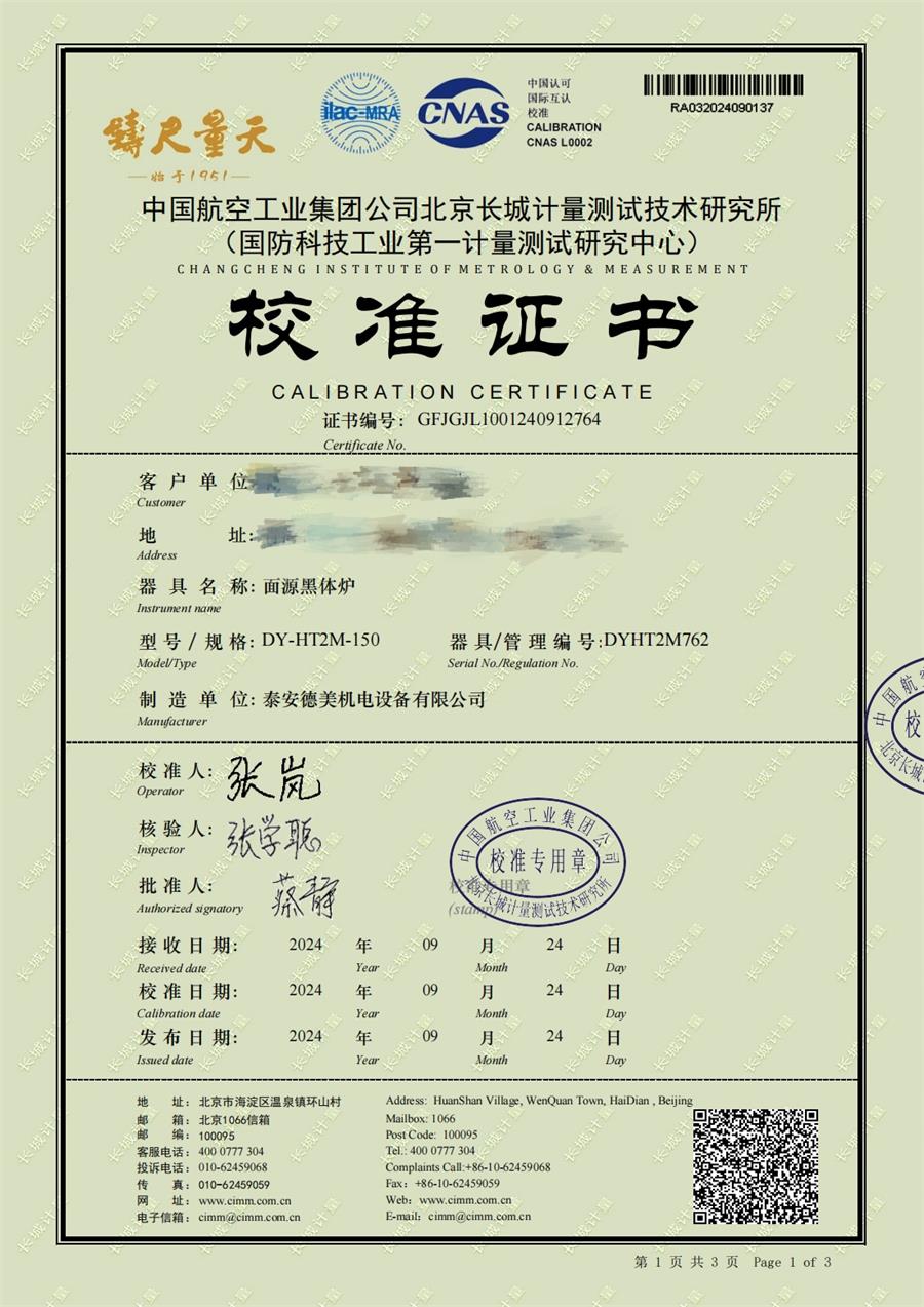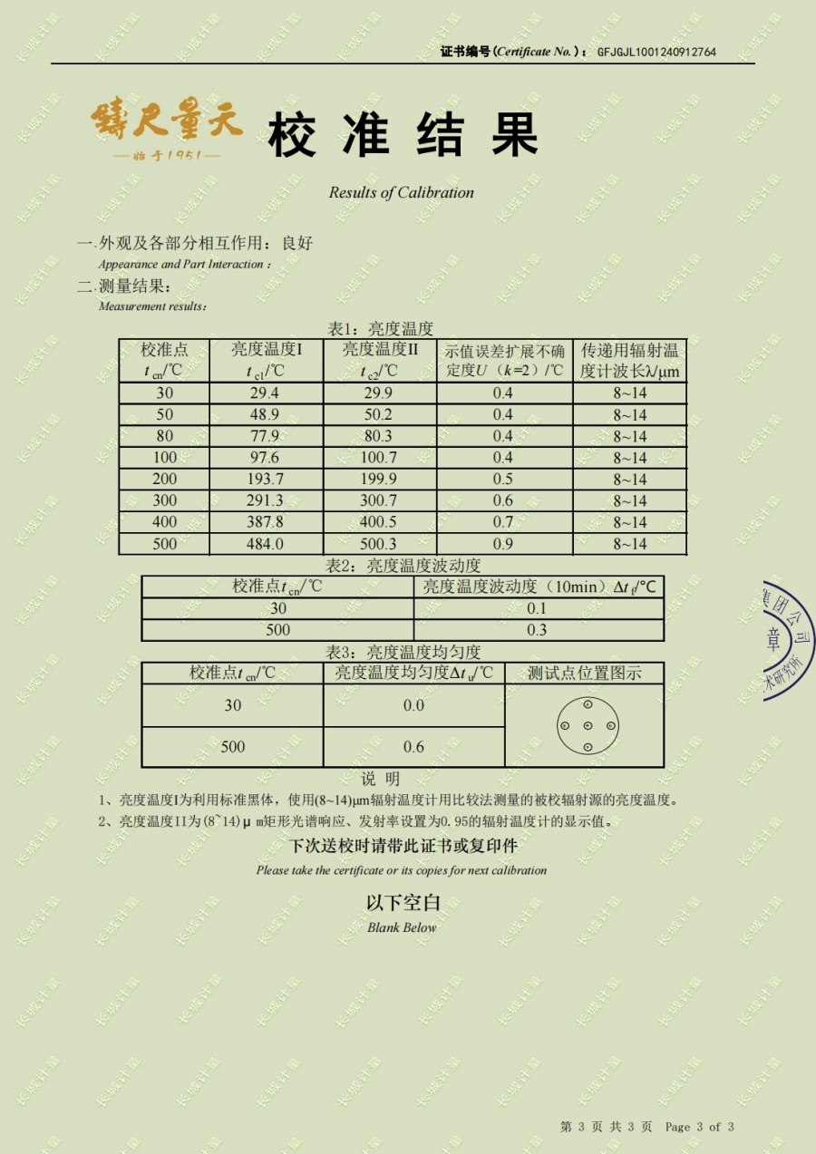 上一條:黑體輻射源(50-700℃)校準(zhǔn)證書(shū) | 下一條:超低溫面源黑體爐(-40-80℃)校準(zhǔn)證書(shū) |