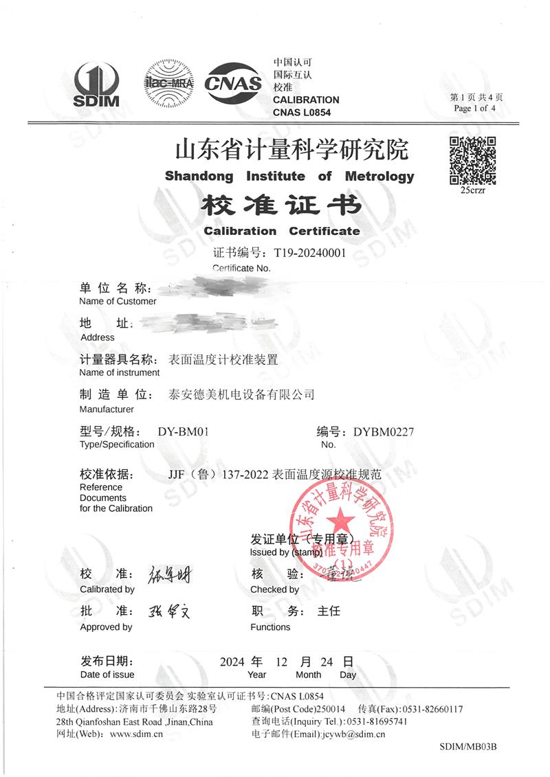 上一條:中溫腔式黑體爐(50~600℃)校準(zhǔn)證書 | 下一條:超低溫面源黑體爐(-40-80℃)校準(zhǔn)證書 |