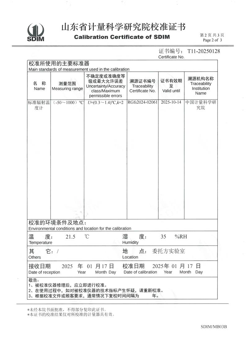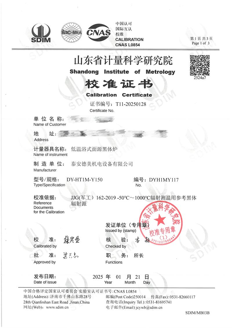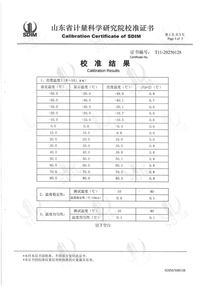 上一條:表面溫度計(jì)校準(zhǔn)裝置(室溫+5℃~400℃)校準(zhǔn)證書 | 下一條:超低溫面源黑體爐(-40-80℃)校準(zhǔn)證書 |