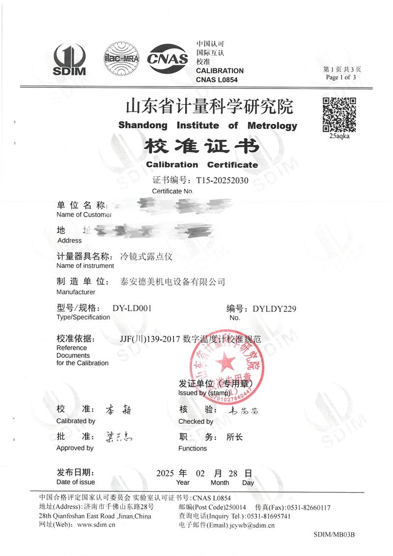露點(diǎn)儀檢定、校準(zhǔn)證書 2025-3-8 本文被閱讀 3609 次