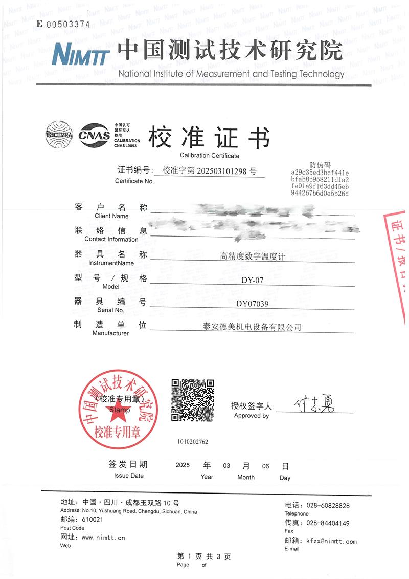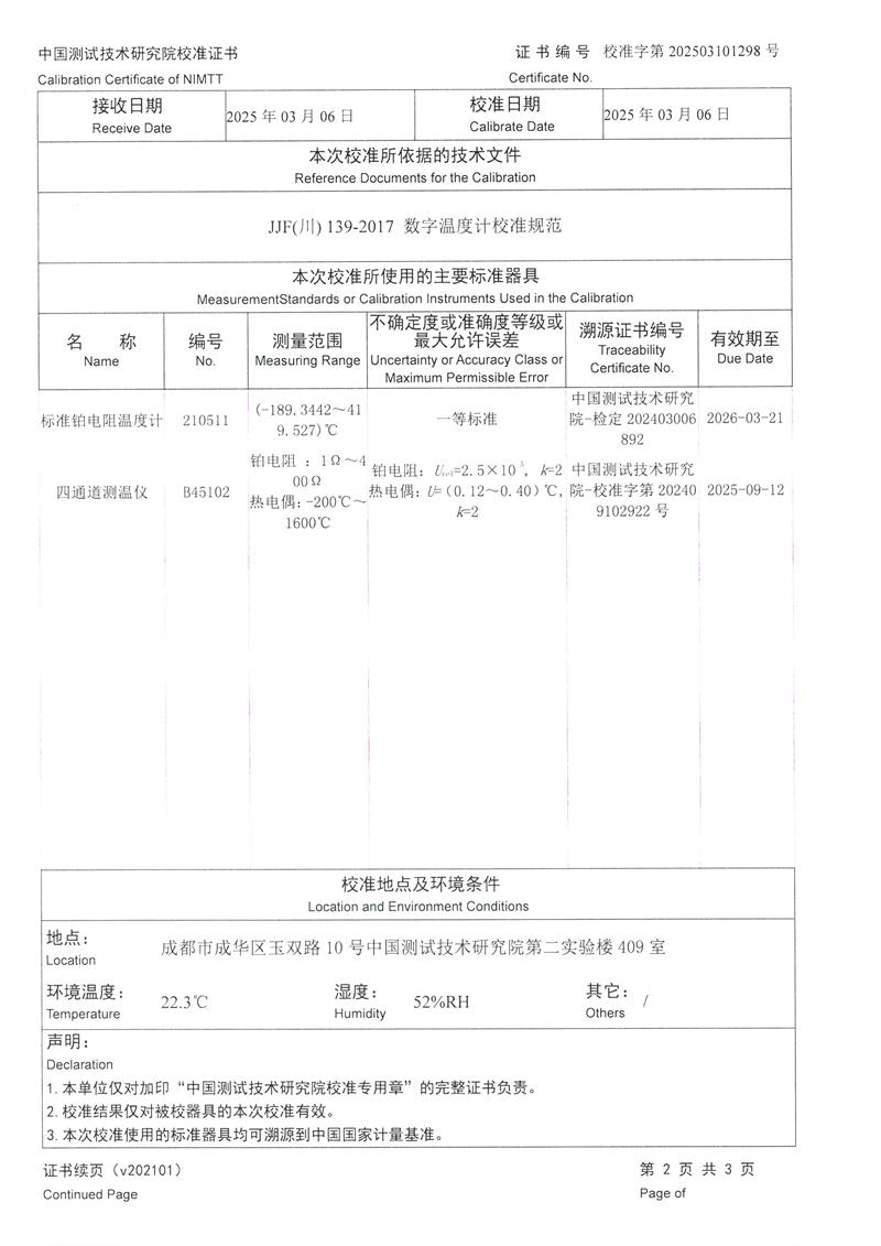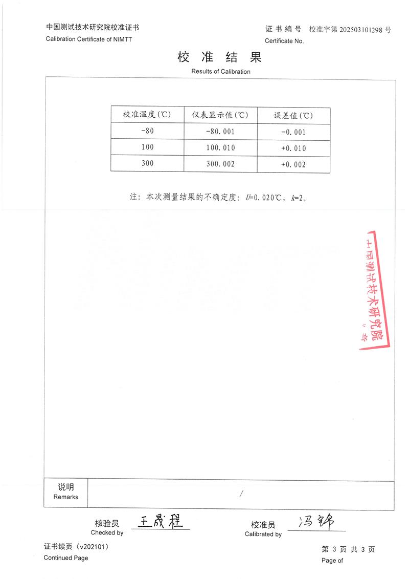 上一條:露點(diǎn)儀檢定、校準(zhǔn)證書(shū) | 下一條:超低溫面源黑體爐(-40-80℃)校準(zhǔn)證書(shū) |