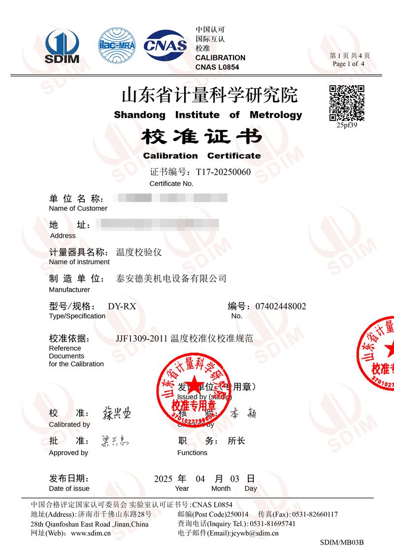 溫度校驗(yàn)儀校準(zhǔn)證書 2025-4-7 本文被閱讀 2770 次