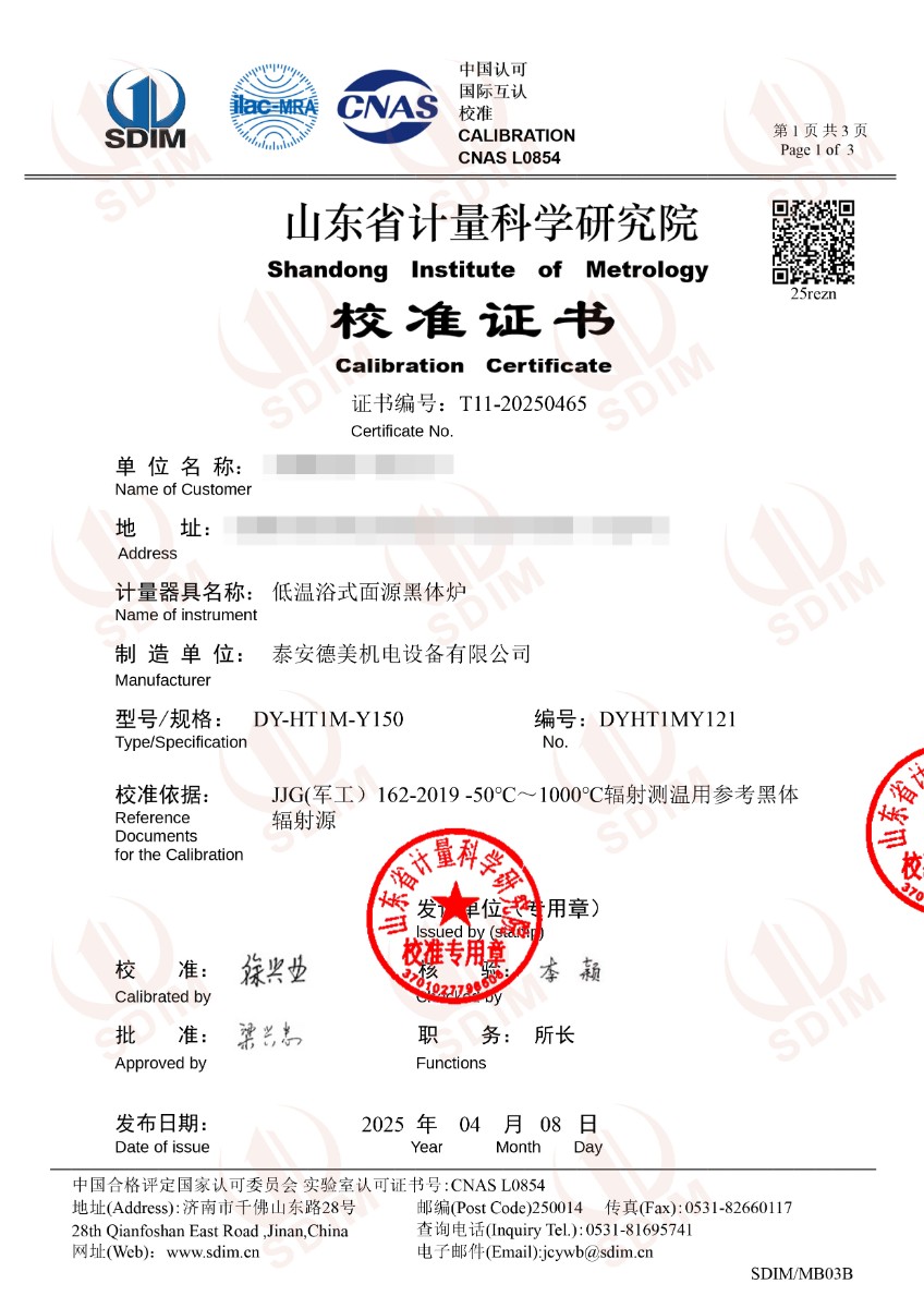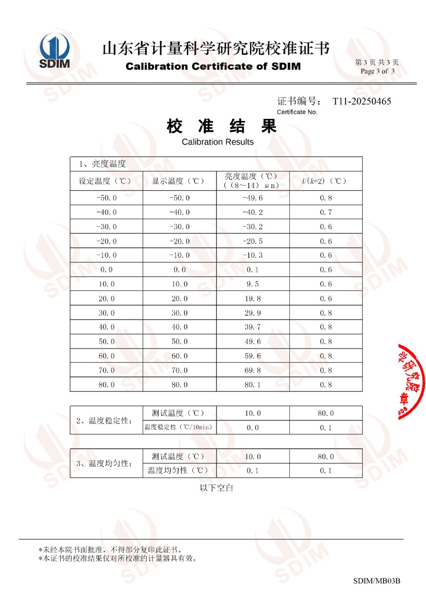 低溫浴式面源黑體爐(-50-80℃)校準證書 2025-4-9 本文被閱讀 3258 次