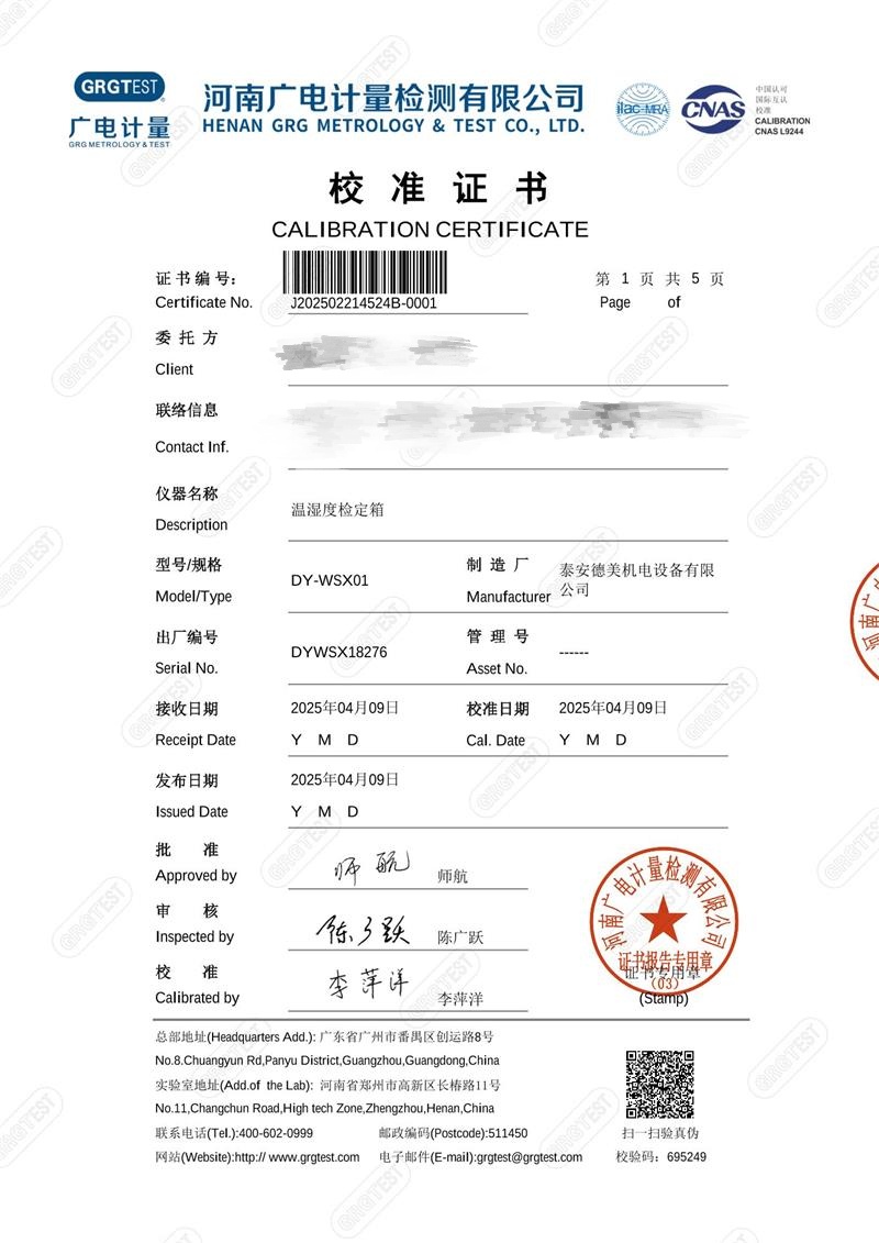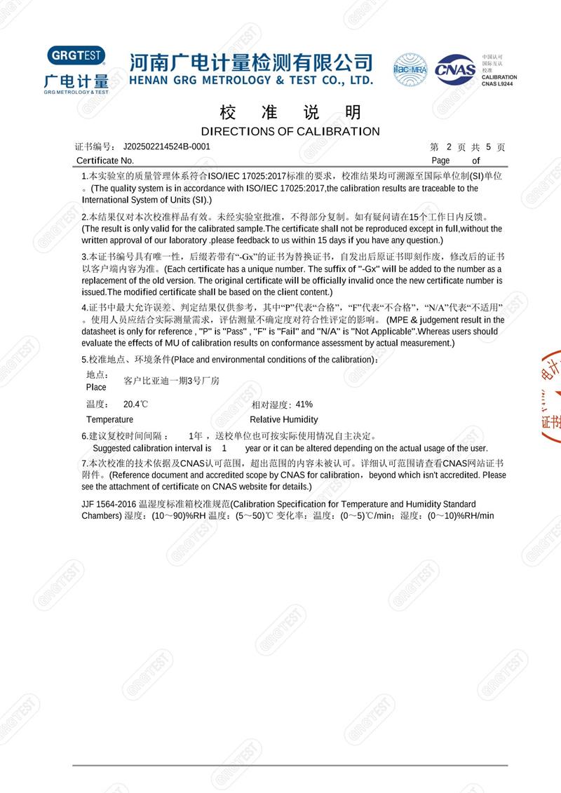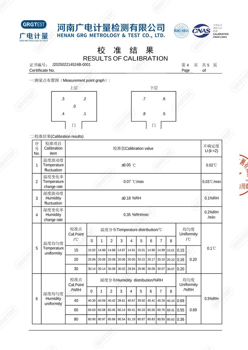 溫濕度檢定箱18276(-5~65℃)校準證書 2025-4-18 本文被閱讀 2455 次