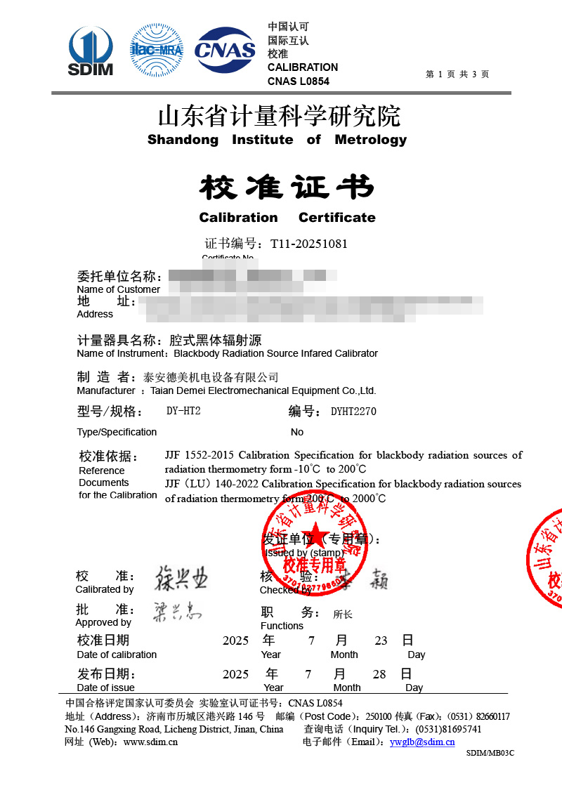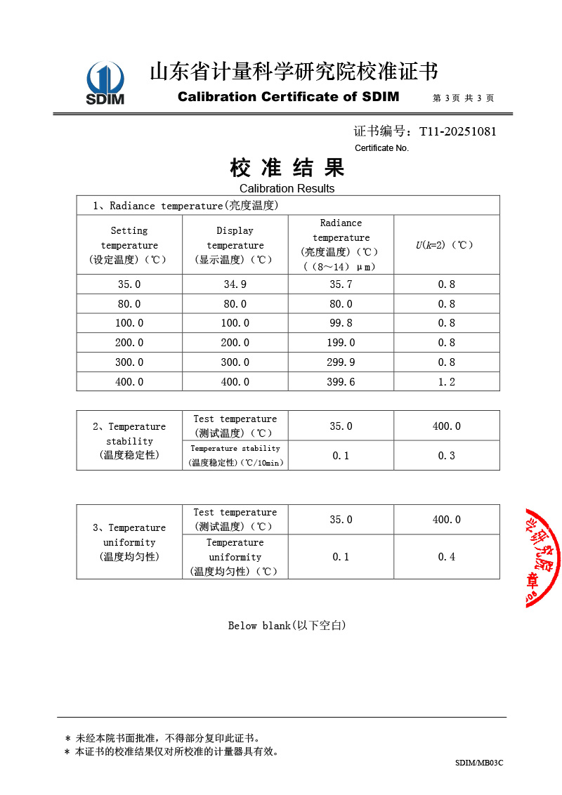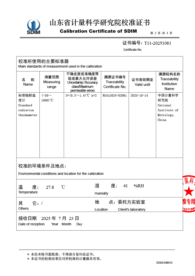 腔式黑體輻射源(室溫+5-400℃)校準證書 2025-7-29 本文被閱讀 1719 次