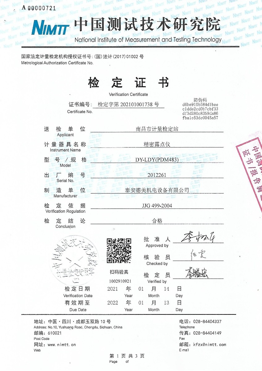 南昌市計量檢定站-精密露點儀 2021-1-22 本文被閱讀 16362 次
