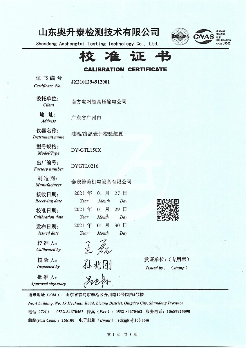 | 上一條:長沙彼樂機(jī)電設(shè)備有限公司-體溫黑體爐額溫部分 | 下一條:零點(diǎn)恒溫器校準(zhǔn)證書 |