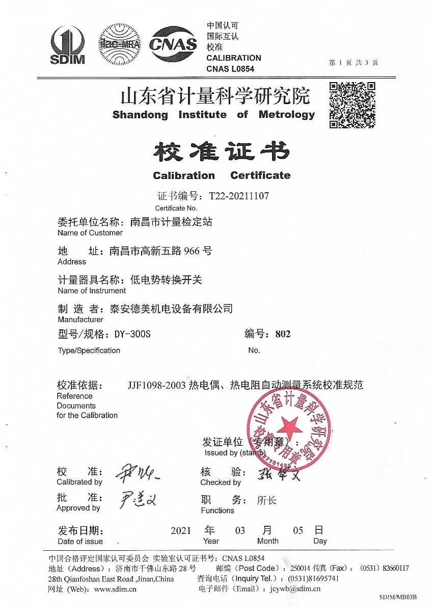 | 上一條:淮安市計(jì)量測(cè)試-零點(diǎn)恒溫器 | 下一條:溫濕度檢定箱(-5~65℃)校準(zhǔn)證書(shū) |