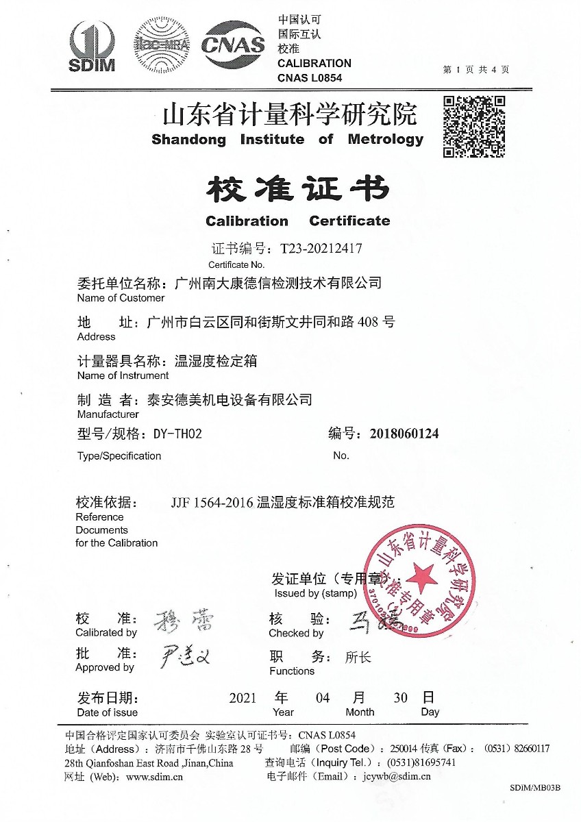 | 上一條:山東華源工程設(shè)備安裝有限公司-干體溫度校驗(yàn)爐 | 下一條:便攜式干體爐(-30-150℃)校準(zhǔn)證書 |