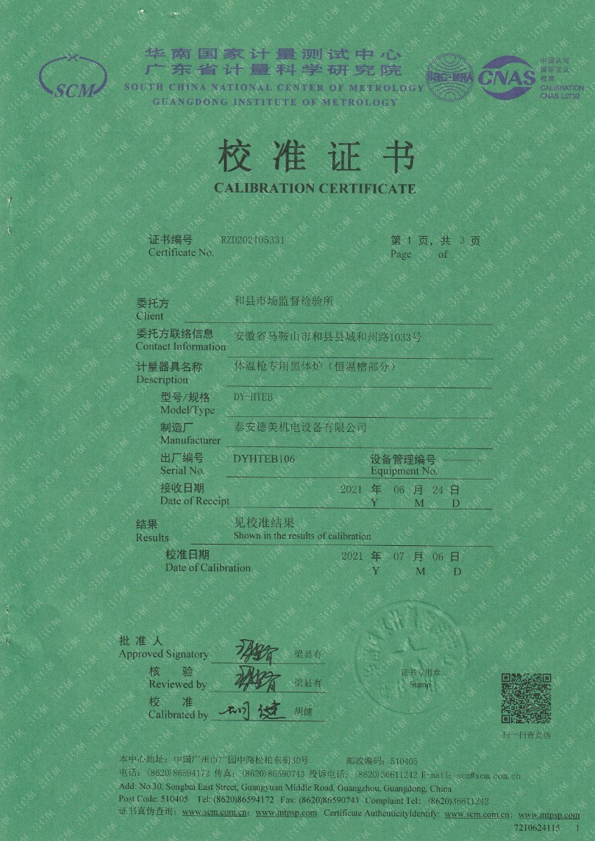 上一條:和縣市場(chǎng)監(jiān)督檢驗(yàn)所-耳溫黑體(黑體輻射源) | 下一條:超低溫面源黑體爐(-40-80℃)校準(zhǔn)證書 |