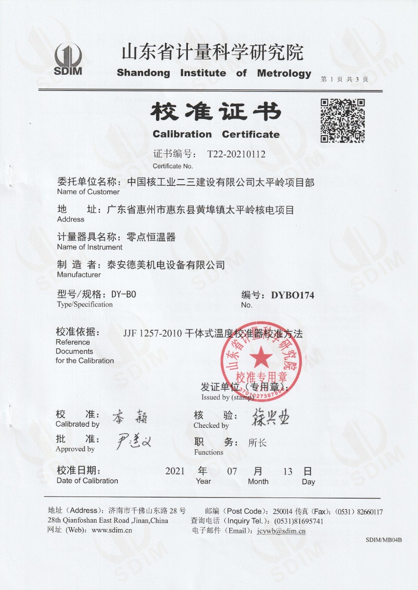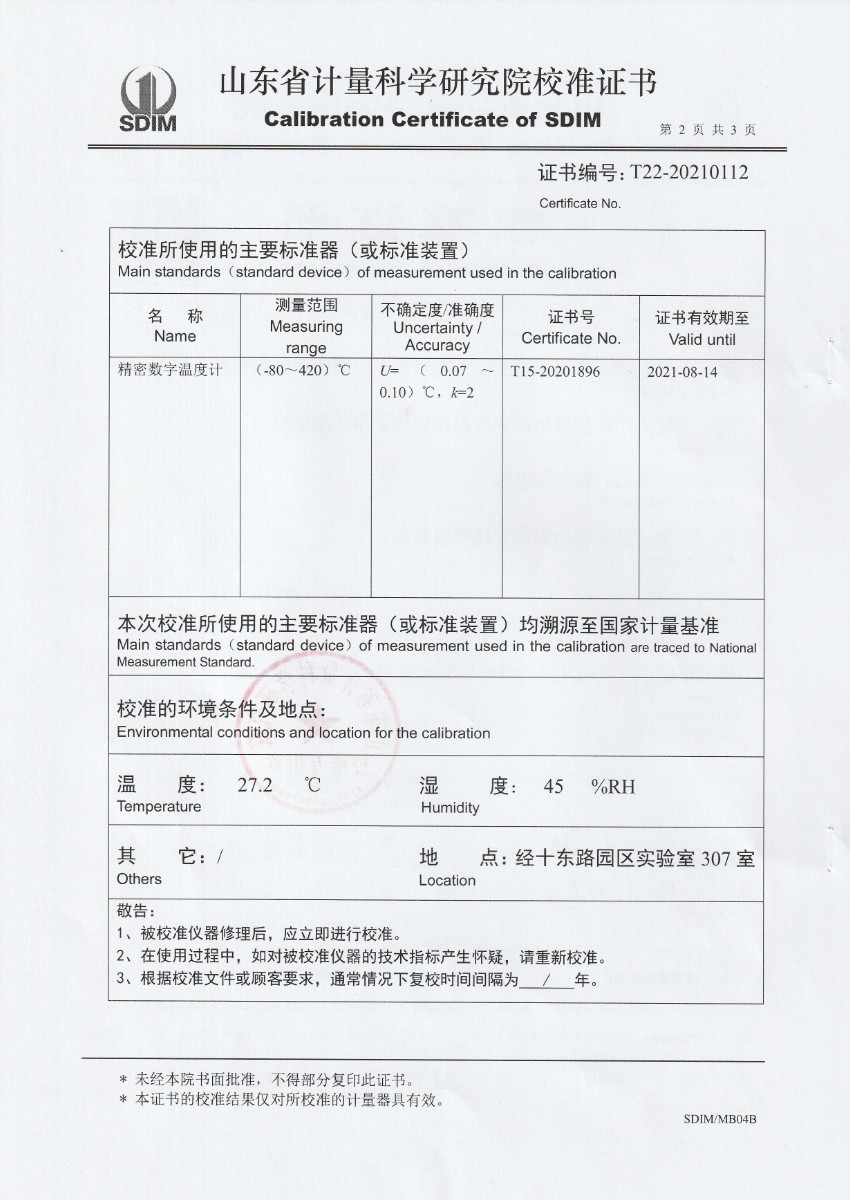 上一條:中國核工業(yè)二三建設(shè)有限公司太平嶺項目部-標(biāo)準(zhǔn)鉑銠10-鉑熱電偶 | 下一條:超低溫面源黑體爐(-40-80℃)校準(zhǔn)證書 |