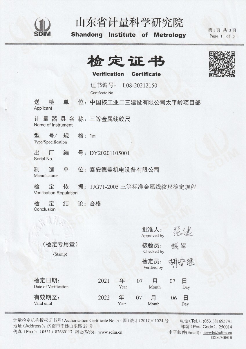 上一條:中國核工業(yè)二三建設(shè)有限公司太平嶺項(xiàng)目部-零點(diǎn)恒溫器 | 下一條:超低溫面源黑體爐(-40-80℃)校準(zhǔn)證書 |