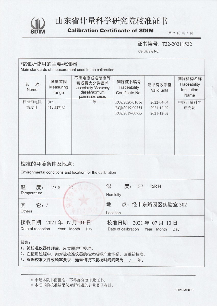 上一條:中國核工業(yè)二三建設(shè)有限公司太平嶺項(xiàng)目部-三等金屬線紋尺 | 下一條:超低溫面源黑體爐(-40-80℃)校準(zhǔn)證書 |