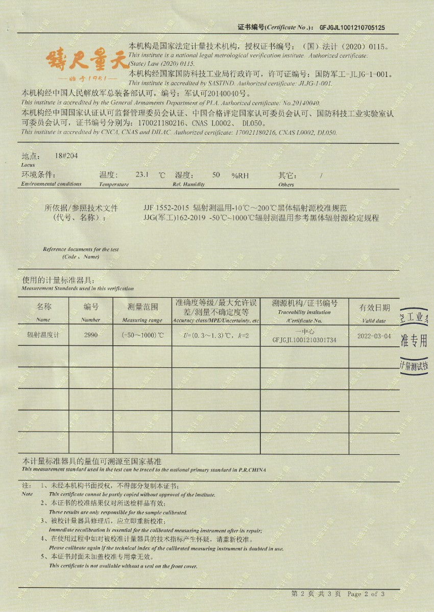 上一條:中國(guó)核工業(yè)二三建設(shè)有限公司太平嶺項(xiàng)目部-水三相點(diǎn)瓶 | 下一條:超低溫面源黑體爐(-40-80℃)校準(zhǔn)證書 |