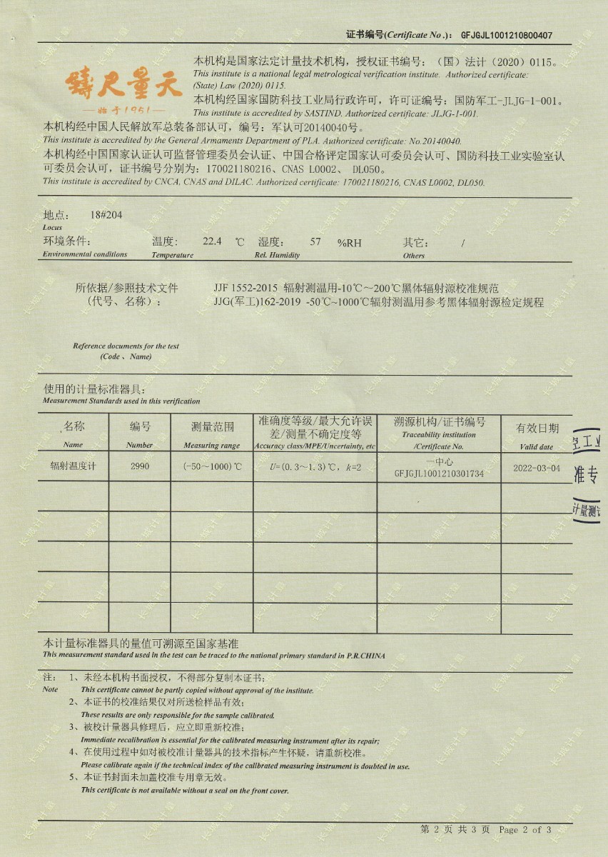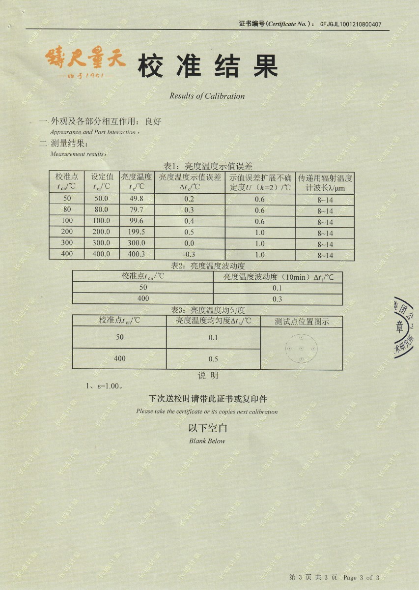 上一條:迪皮埃風電葉片揚州有限公司-面源黑體輻射源下一條:超低溫面源黑體爐(-40-80℃)校準證書