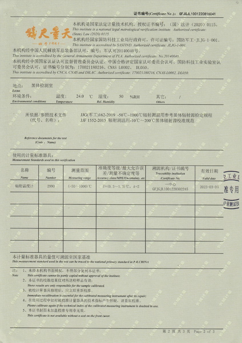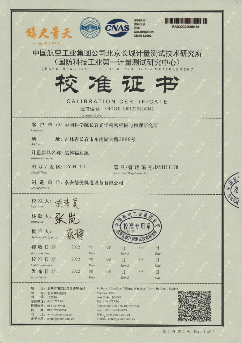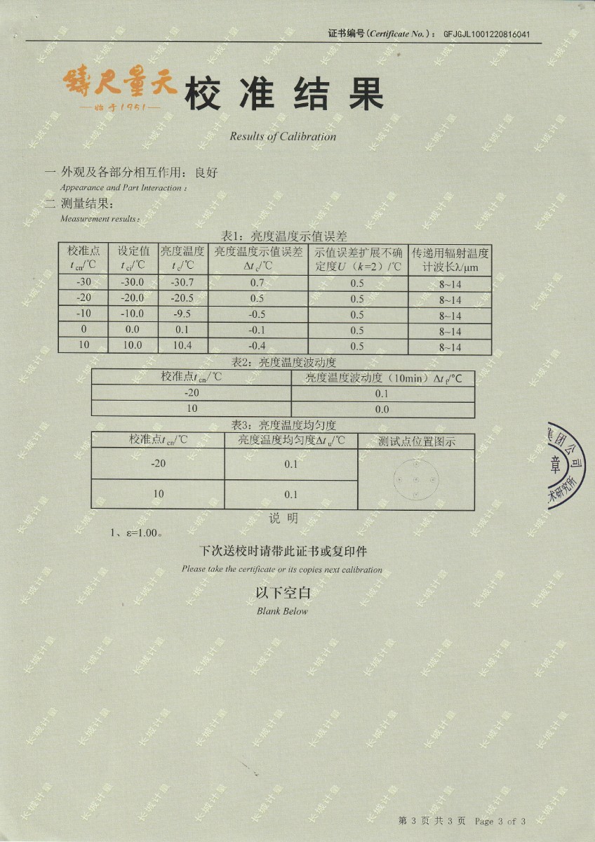 上一條:晶科能源(金昌)公司-黑體輻射源 | 下一條:超低溫面源黑體爐(-40-80℃)校準(zhǔn)證書(shū) |