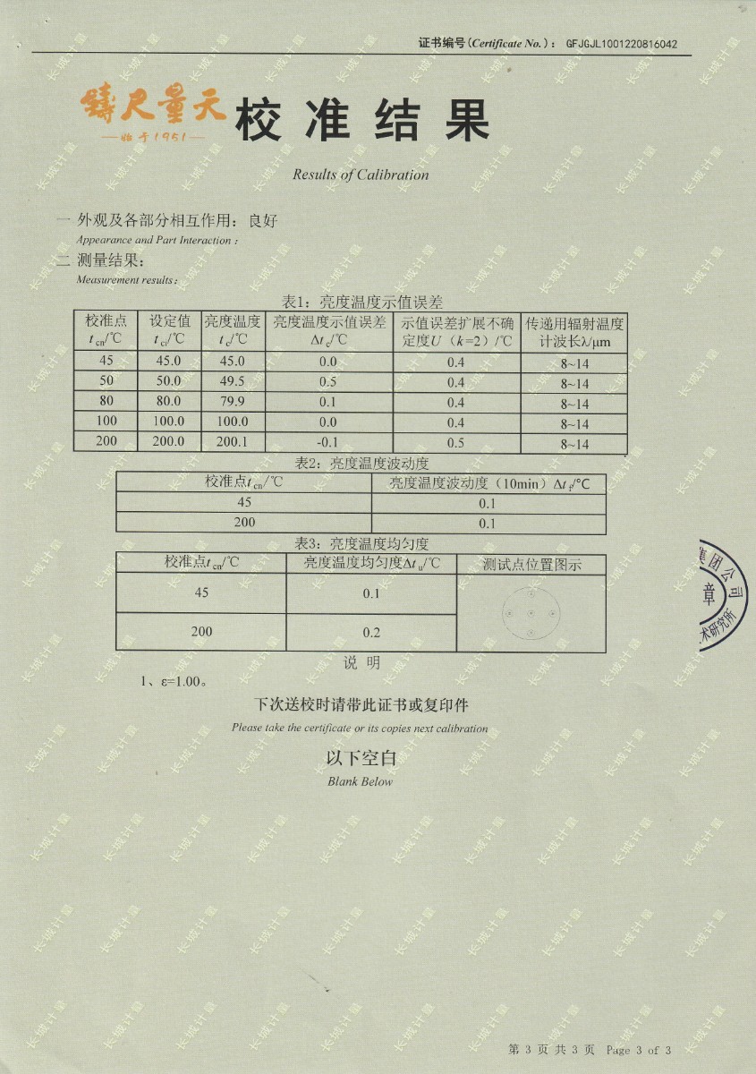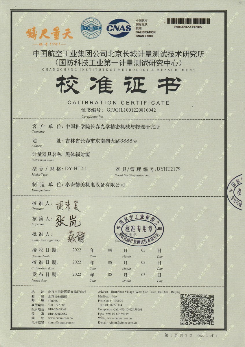 上一條:中國科學(xué)院長春光學(xué)精密機(jī)械與物理研究所-黑體爐DY-HT1-11 | 下一條:超低溫面源黑體爐(-40-80℃)校準(zhǔn)證書 |
