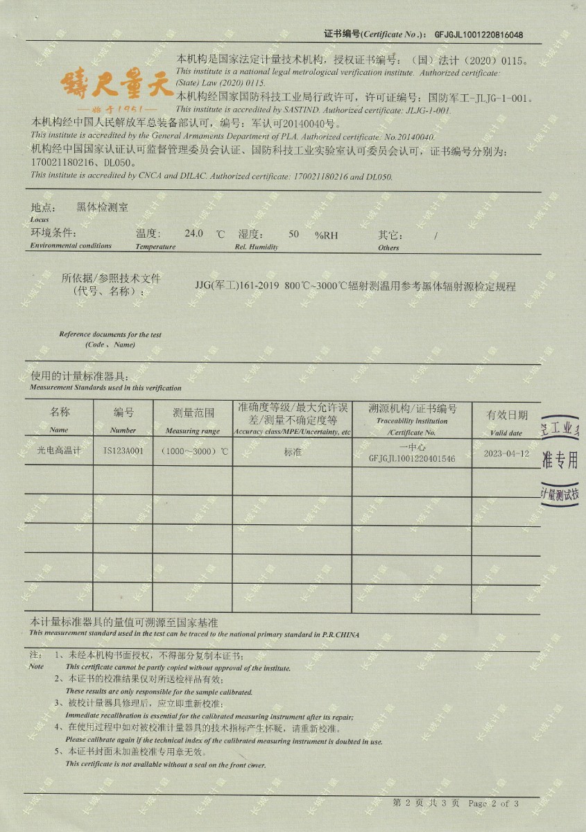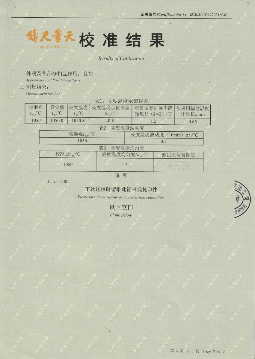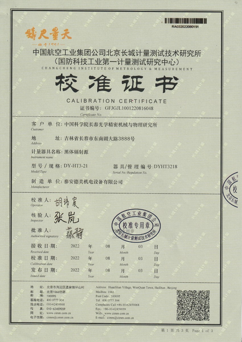 上一條:中國科學院長春光學精密機械與物理研究所-黑體爐DY-HT3-11 | 下一條:超低溫面源黑體爐(-40-80℃)校準證書 |