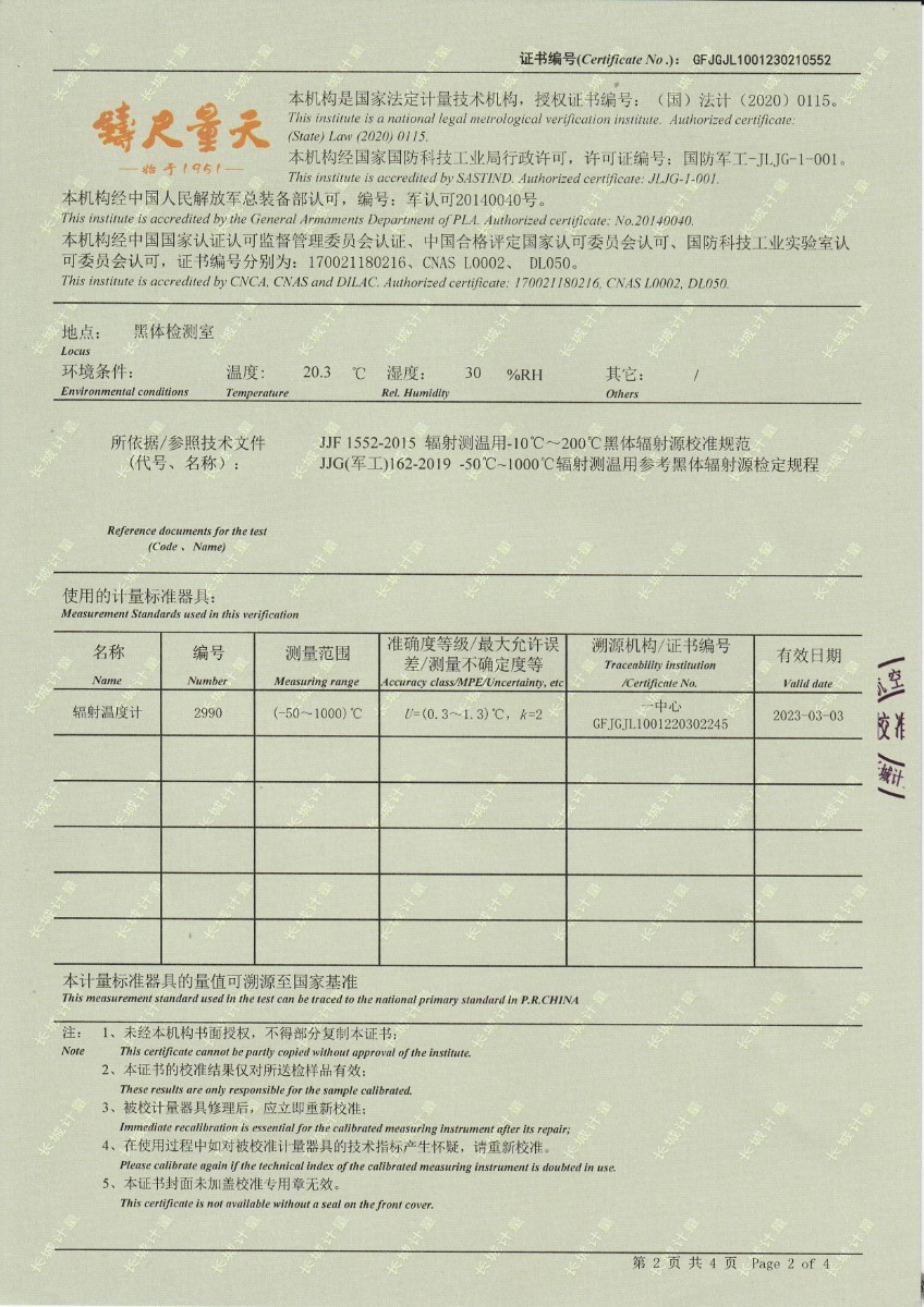 上一條:煙臺(tái)信泰檢測技術(shù)服務(wù)有限公司 黑體爐 校準(zhǔn)證書 | 下一條:超低溫面源黑體爐(-40-80℃)校準(zhǔn)證書 |