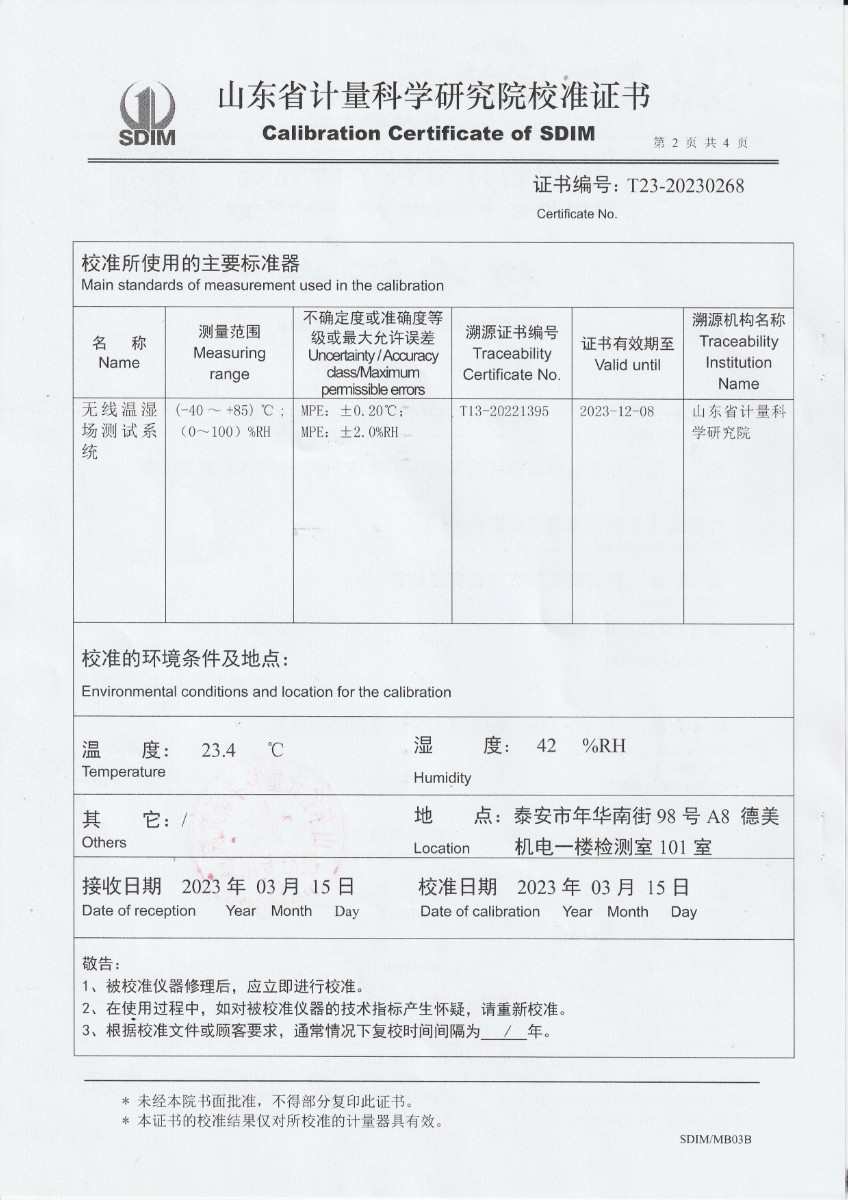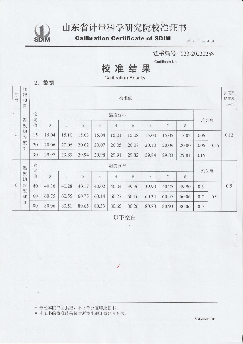 上一條:廈門新能安科技有限公司 溫濕度檢定箱 校準(zhǔn)證書 | 下一條:超低溫面源黑體爐(-40-80℃)校準(zhǔn)證書 |