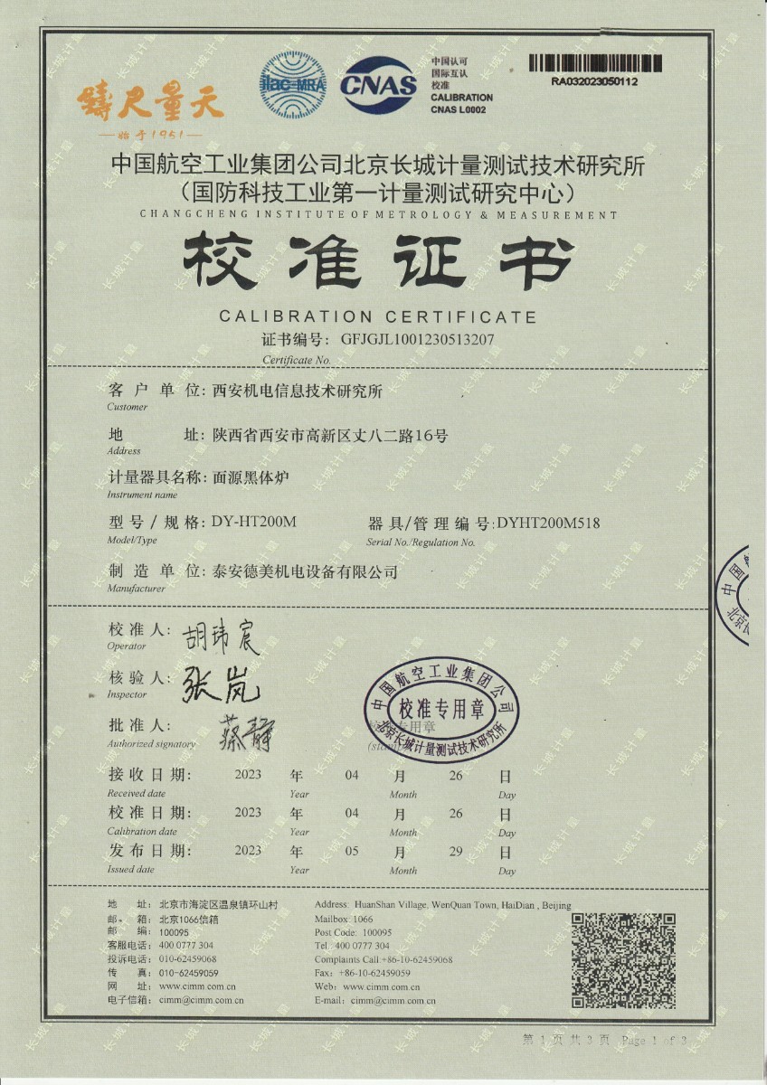 上一條:云南馳宏國(guó)際鍺業(yè)有限公司 面源黑體校準(zhǔn)證書(shū) | 下一條:超低溫面源黑體爐(-40-80℃)校準(zhǔn)證書(shū) |
