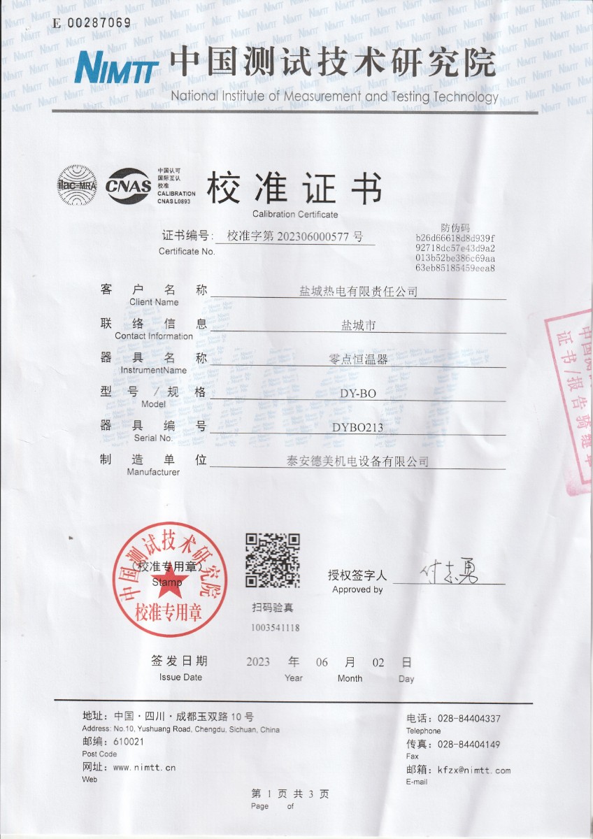鹽城熱電有限責任公司-零點恒溫器 2023-6-9 本文被閱讀 16671 次