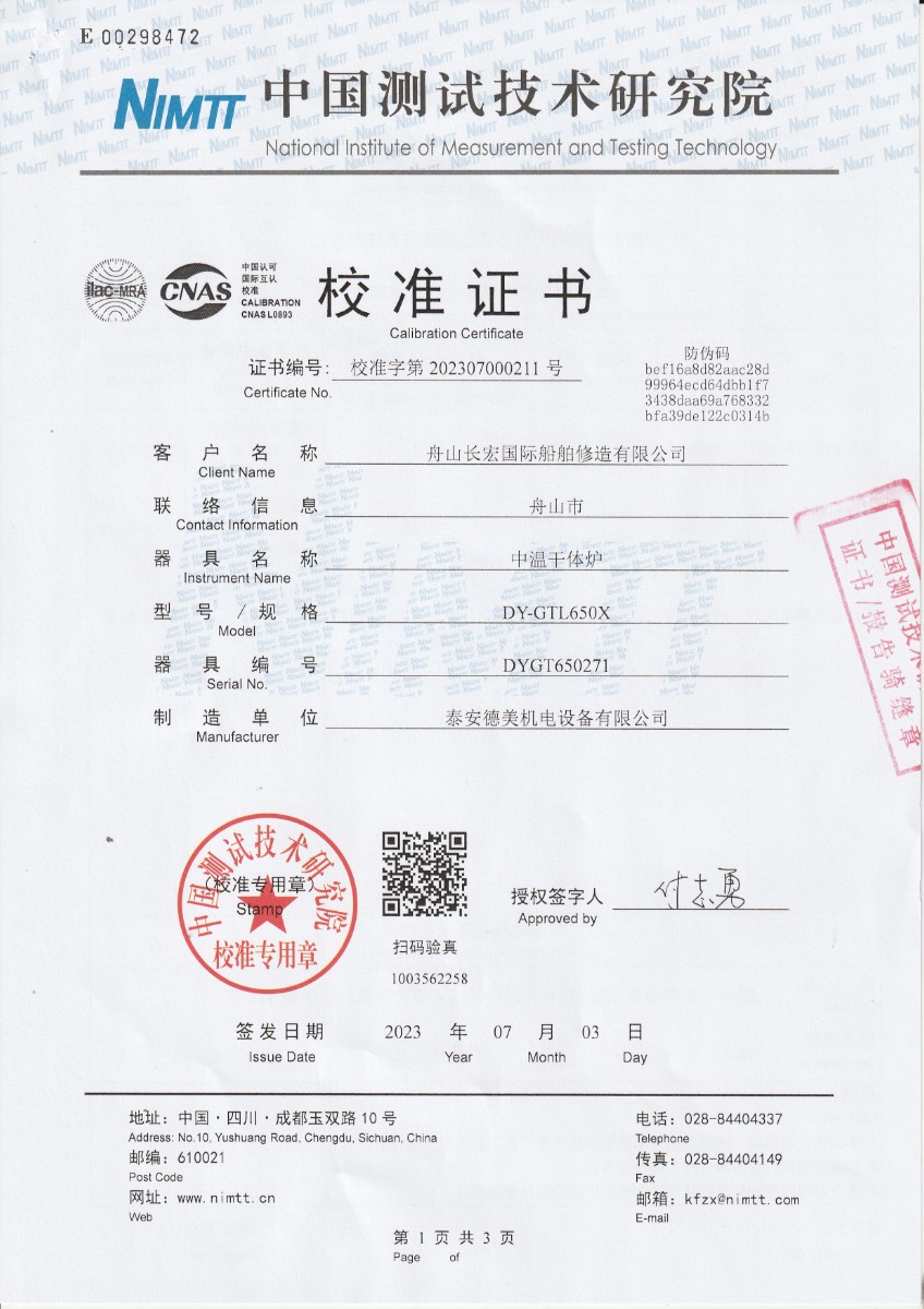 舟山長宏國際船舶修造有限公司-中溫干體爐 2023-7-13 本文被閱讀 11603 次