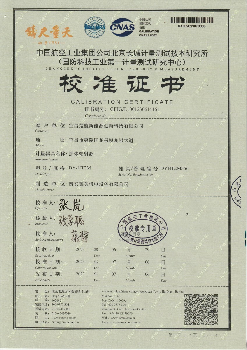 宜昌楚能新能源創(chuàng)新科技有限公司-黑體輻射源 2023-7-17 本文被閱讀 13945 次
