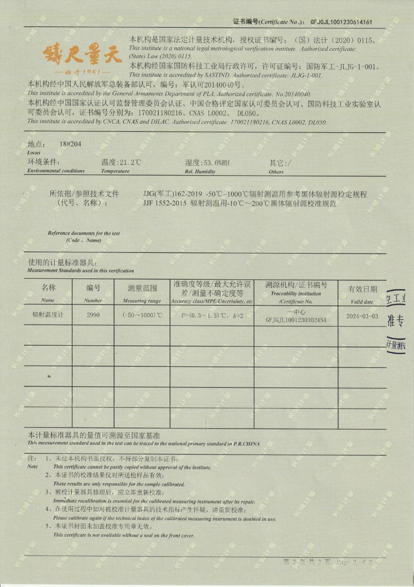 上一條:孝感楚能新能源創(chuàng)新科技有限公司-黑體輻射源下一條:超低溫面源黑體爐(-40-80℃)校準(zhǔn)證書