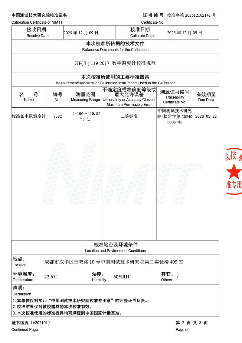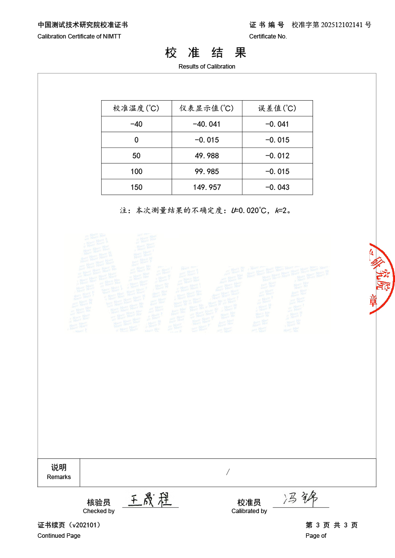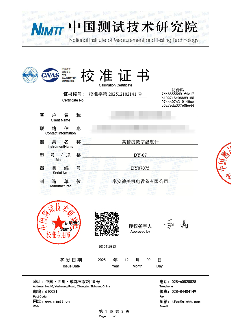 高精度數(shù)字溫度計(jì)校準(zhǔn)證書(shū) 2025-12-11 本文被閱讀 1161 次