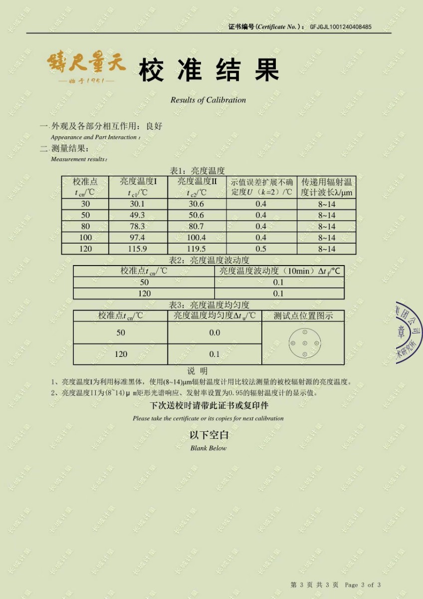 小尺寸高精度中溫黑體校準證書 2024-4-24 本文被閱讀 6963 次