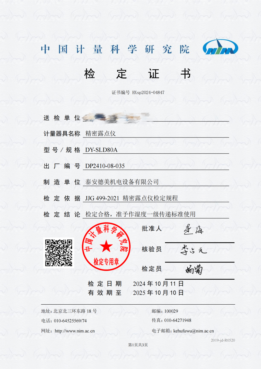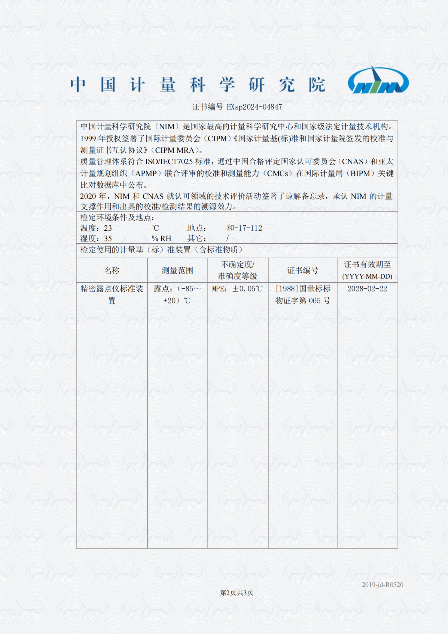 露點儀校檢定證書 2024-10-25 本文被閱讀 6465 次