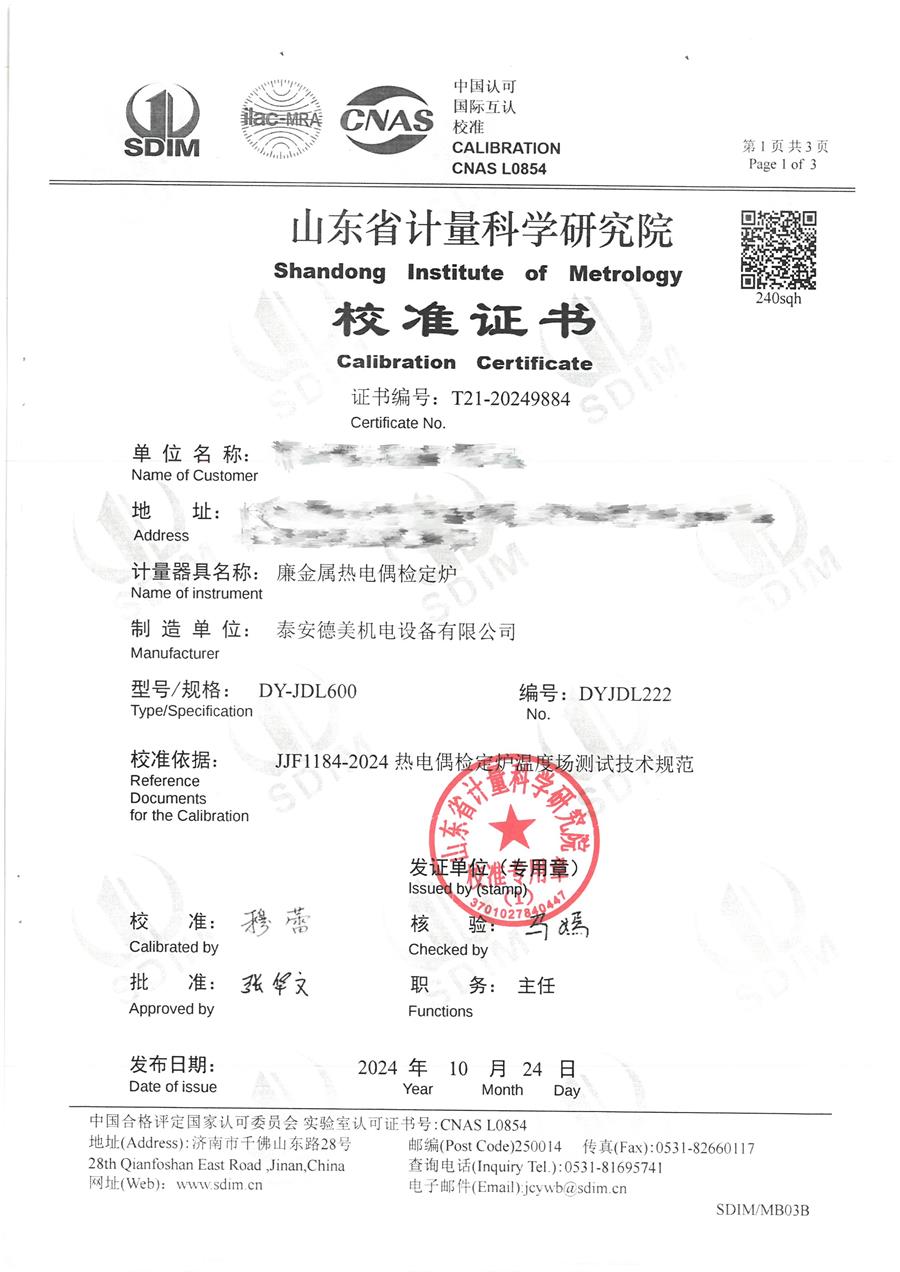 廉金屬熱電偶檢定爐(300-1200℃)校準(zhǔn)證書 2024-11-2 本文被閱讀 6174 次