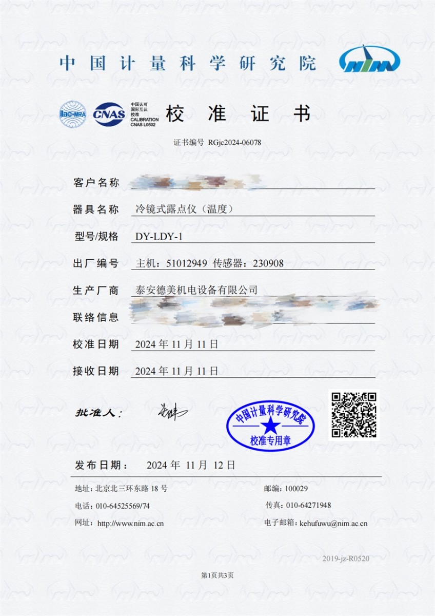 冷鏡式露點(diǎn)儀校準(zhǔn)證書 2024-11-21 本文被閱讀 6994 次