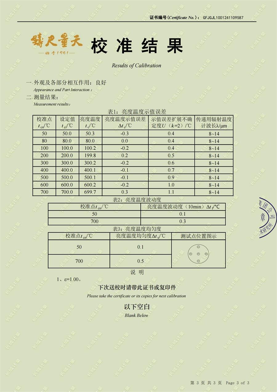 上一條:面源黑體爐校準證書下一條:超低溫面源黑體爐(-40-80℃)校準證書