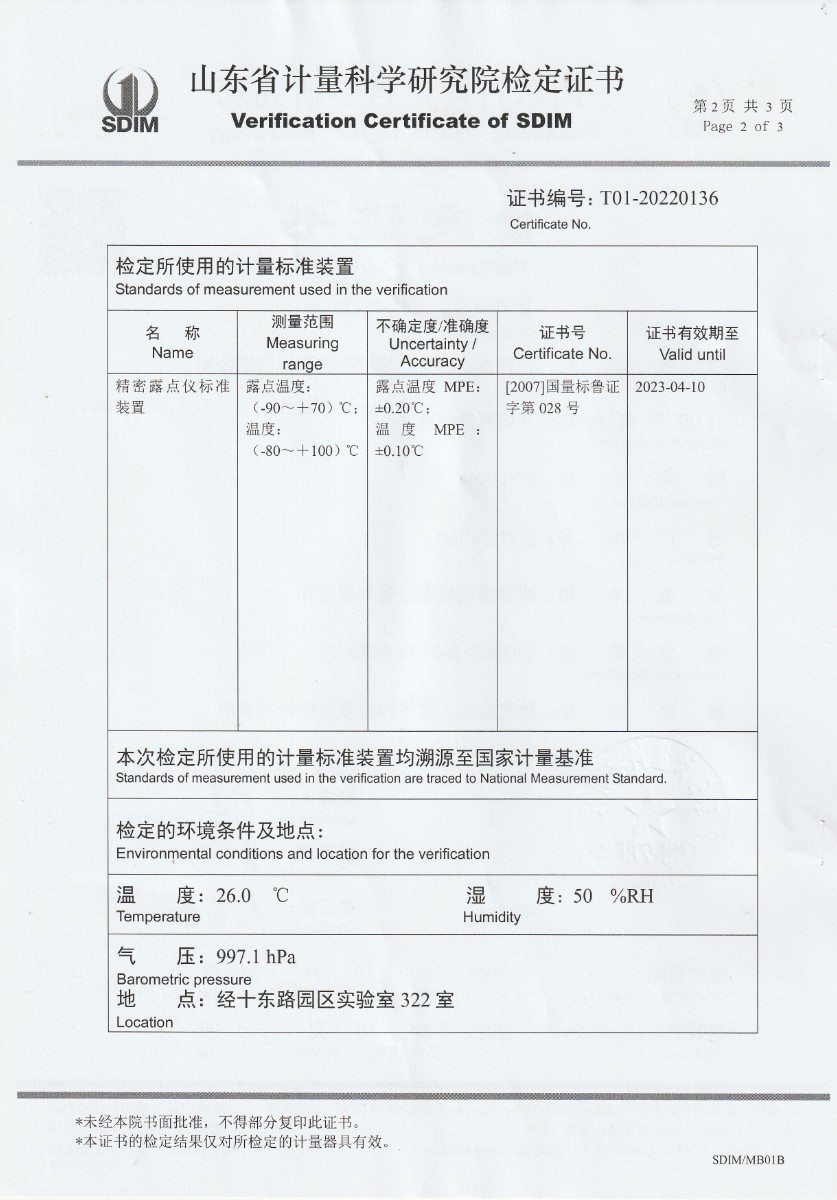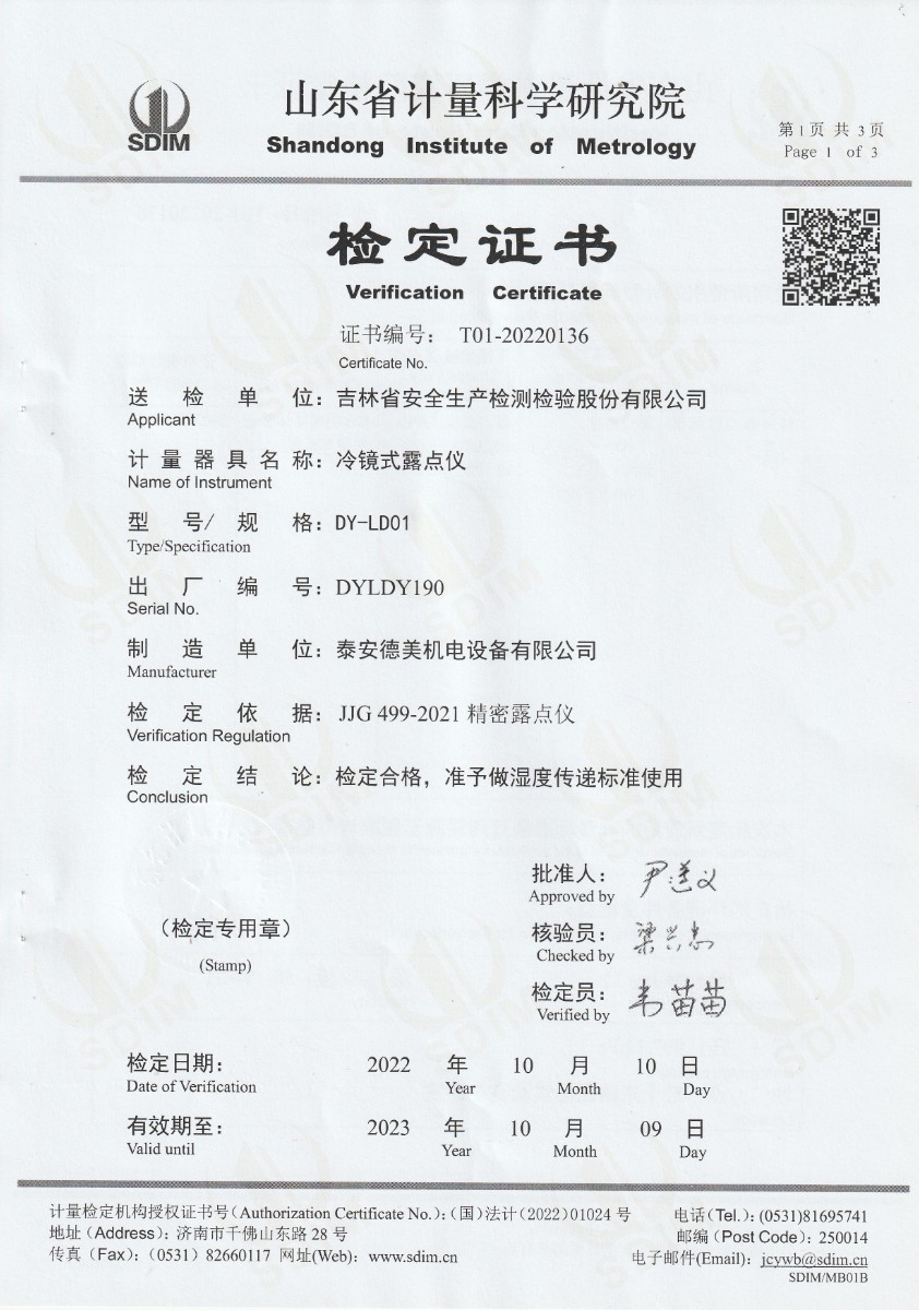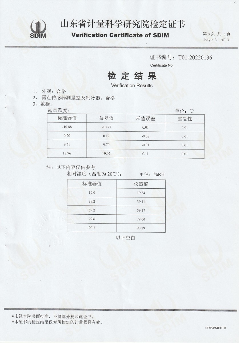上一條:吉林省安全生產(chǎn)檢測(cè)檢驗(yàn)股份有限公司-冷鏡式露點(diǎn)儀校準(zhǔn)證書 | 下一條:便攜式干體爐(-30-150℃)校準(zhǔn)證書 |