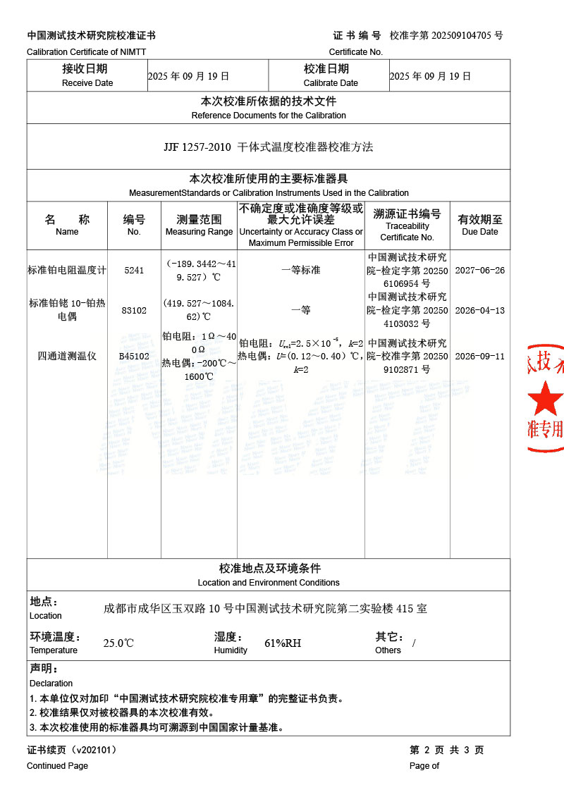 上一條:高溫干體爐(300-1200℃)校準(zhǔn)證書 | 下一條:超低溫面源黑體爐(-40-80℃)校準(zhǔn)證書 |