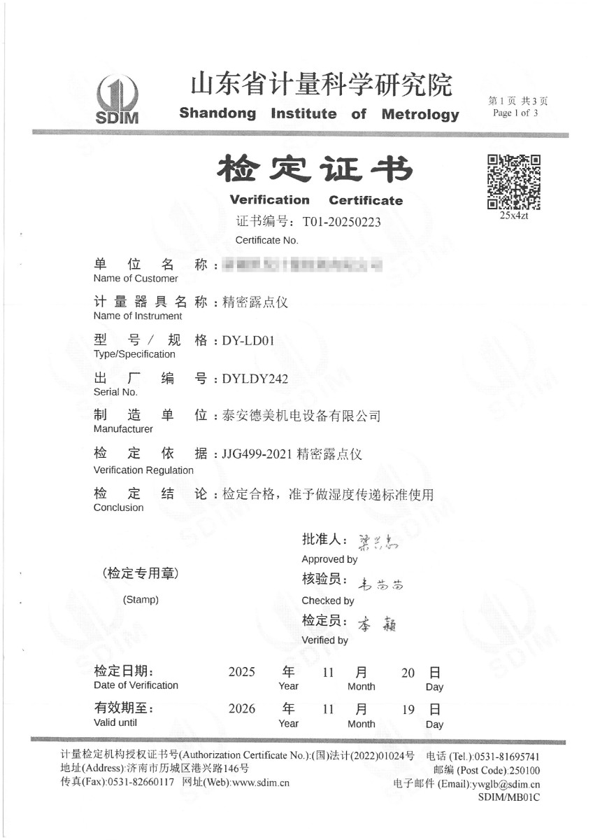 露點(diǎn)儀檢定、校準(zhǔn)證書 2025-12-4 本文被閱讀 66 次