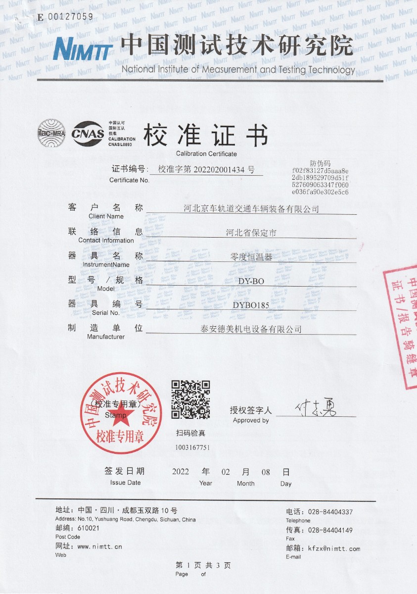 河北京車軌道交通車輛裝備有限公司-零點恒溫器 2022-2-24 本文被閱讀 14873 次