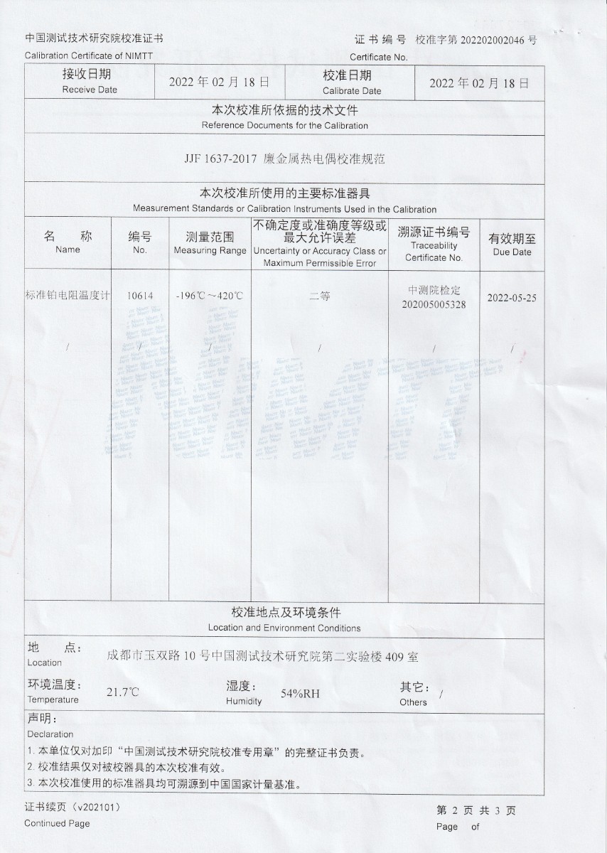 上一條:河北京車軌道交通車輛裝備有限公司-零點(diǎn)恒溫器 | 下一條:超低溫面源黑體爐(-40-80℃)校準(zhǔn)證書 |