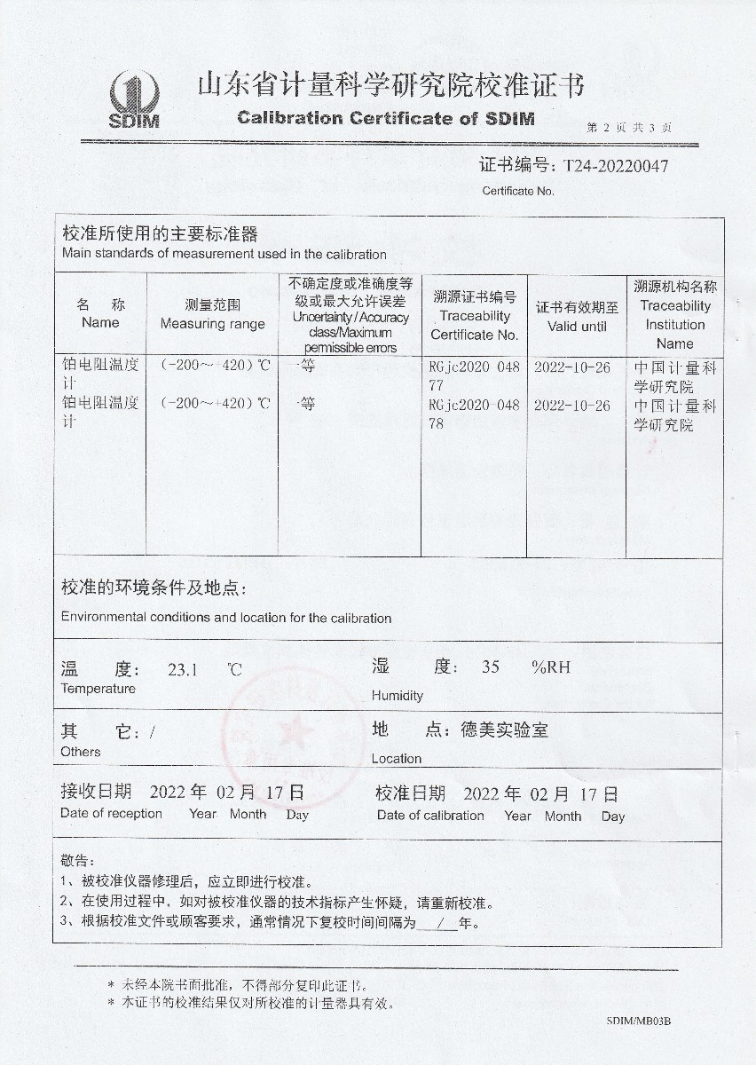 上一條:河北京車軌道交通車輛裝備有限公司-熱電偶補(bǔ)償導(dǎo)線 | 下一條:超低溫面源黑體爐(-40-80℃)校準(zhǔn)證書(shū) |