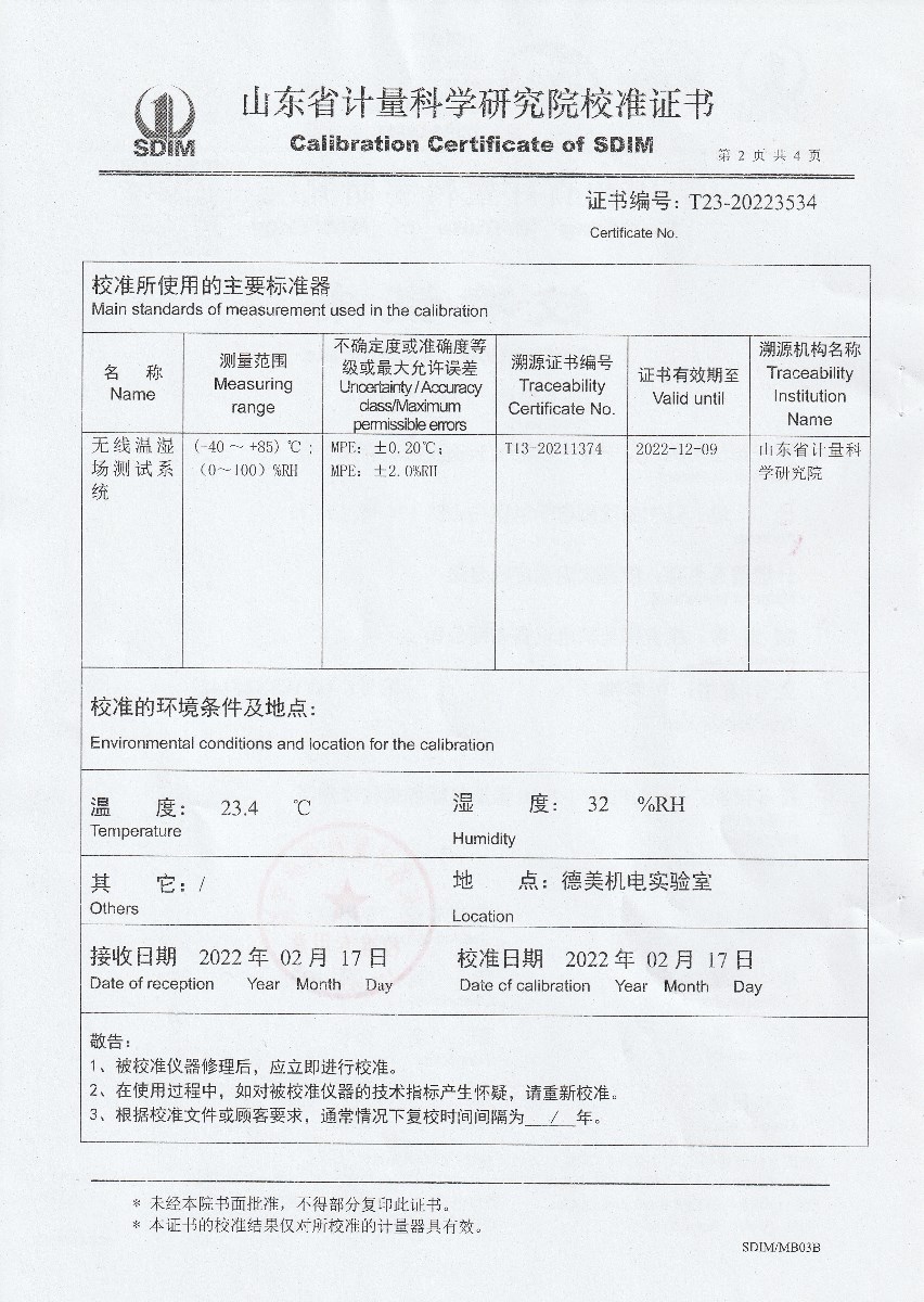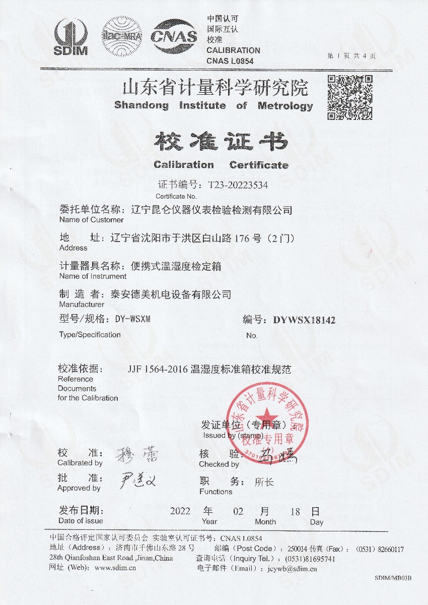 上一條:河北京車軌道交通車輛裝備有限公司-制冷恒溫槽 | 下一條:超低溫面源黑體爐(-40-80℃)校準證書 |