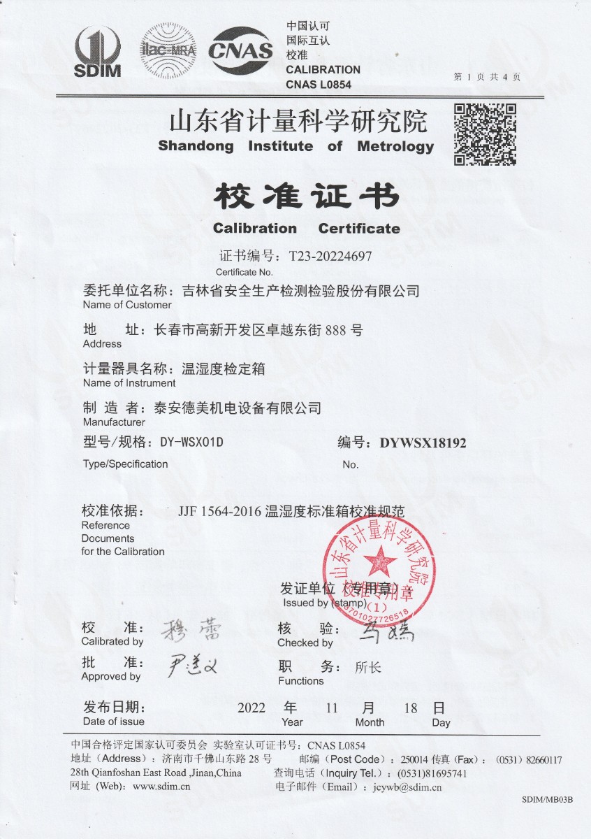 上一條:海安橡膠集團(tuán)股份有限公司 干體爐 校準(zhǔn)證書 | 下一條:超低溫面源黑體爐(-40-80℃)校準(zhǔn)證書 |