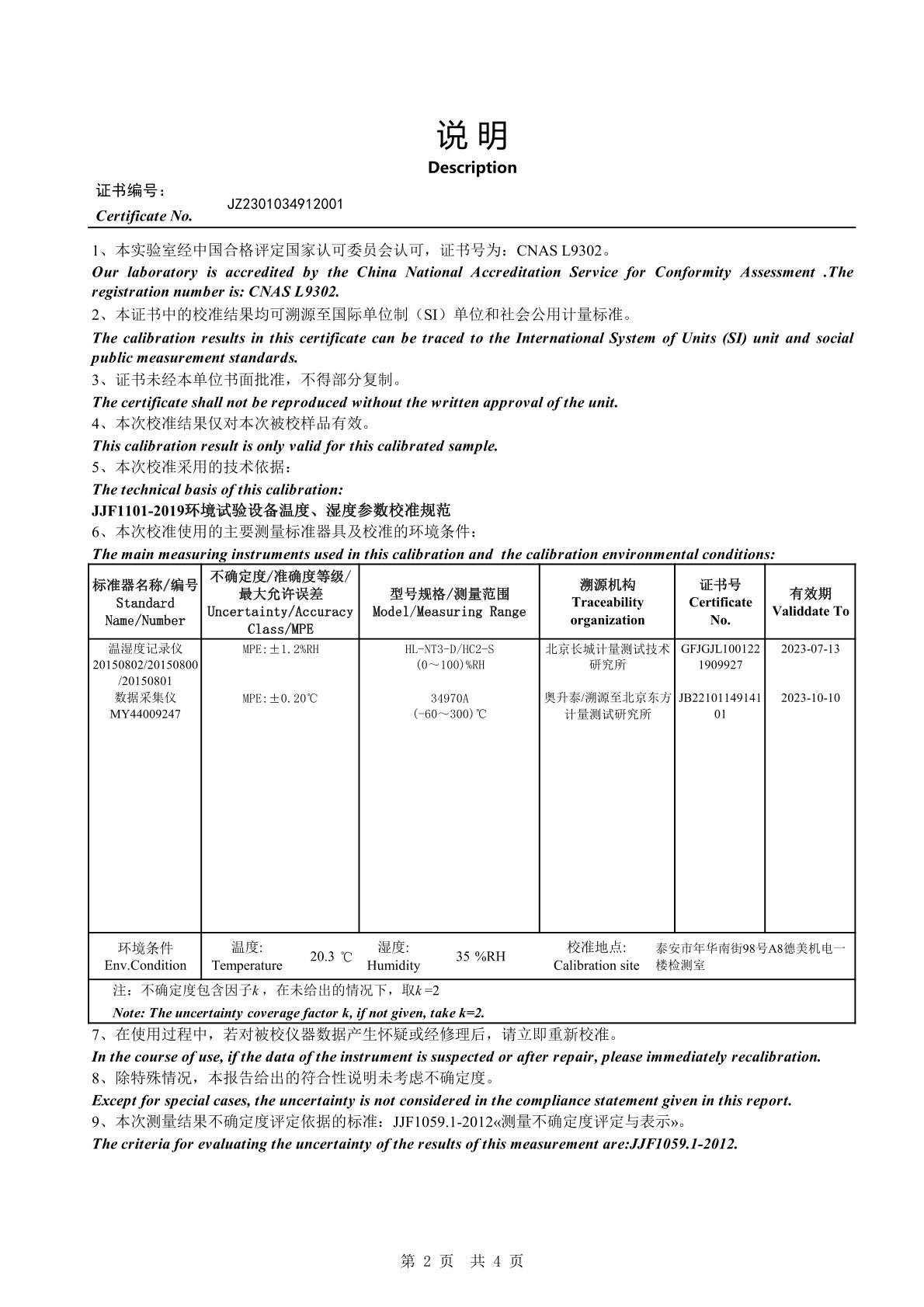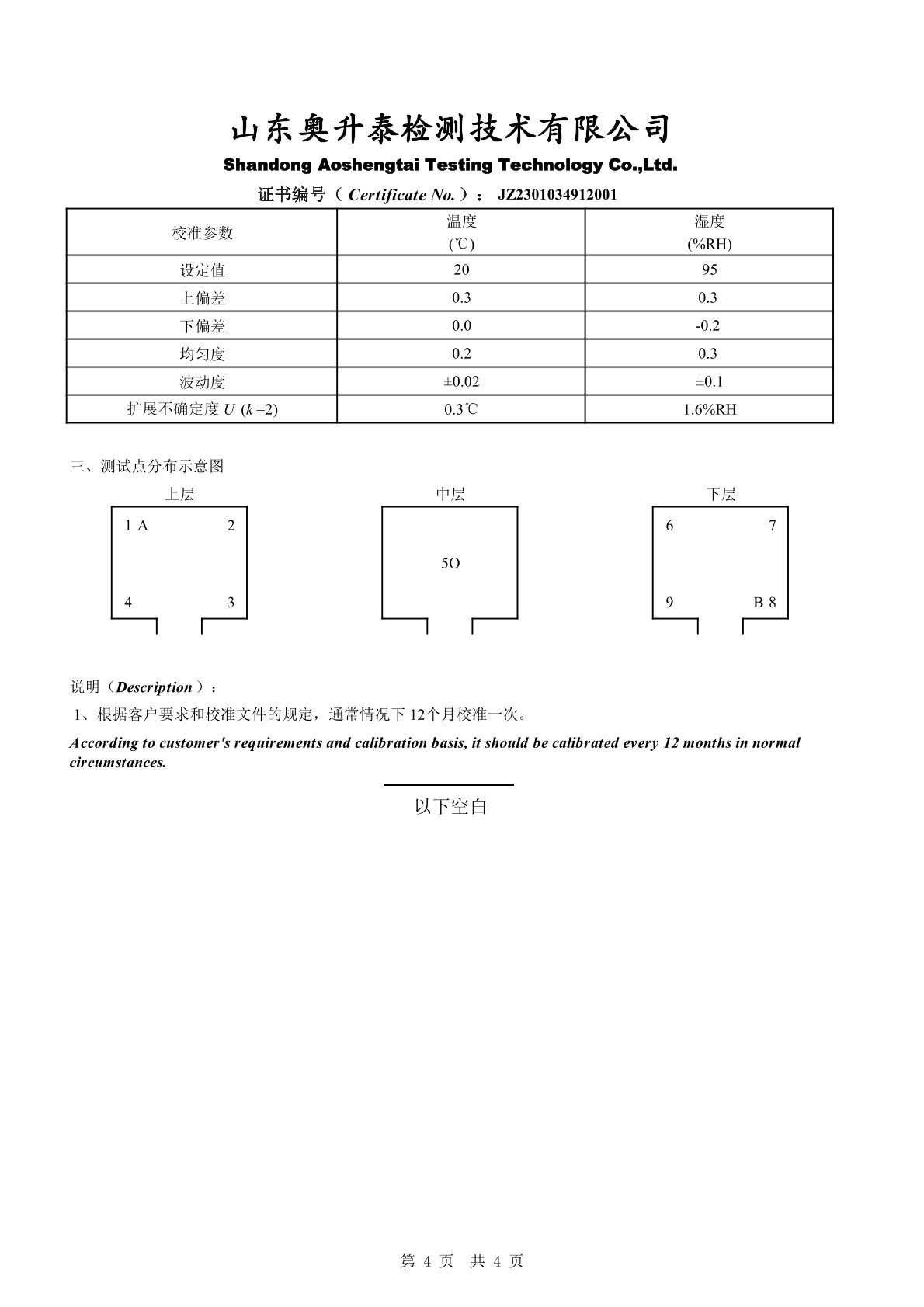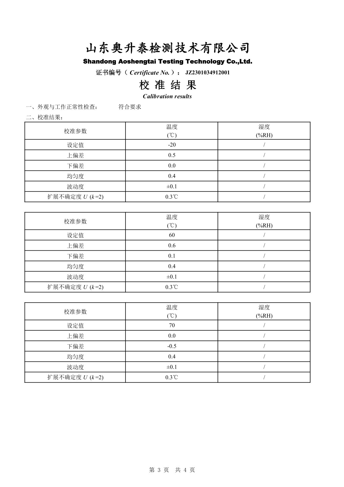 海峽富民生質(zhì)檢技術(shù)服務(wù)有限公司 溫濕度檢定箱校準(zhǔn)證書(1) 2023-1-12 本文被閱讀 12071 次