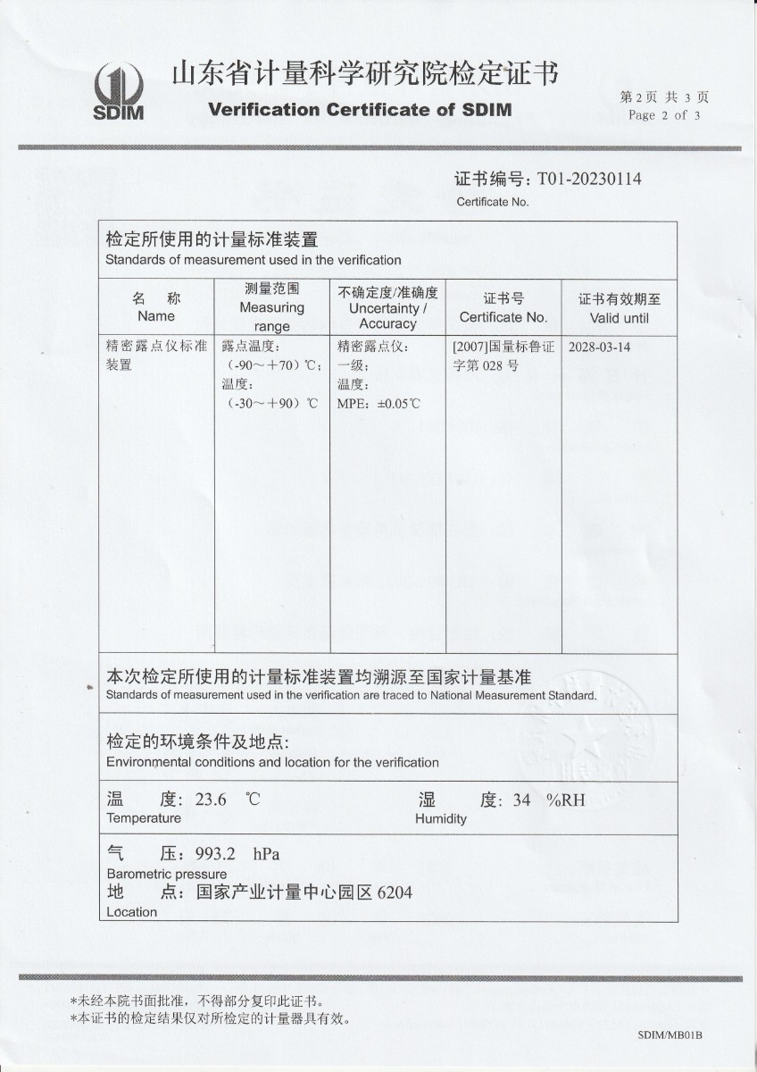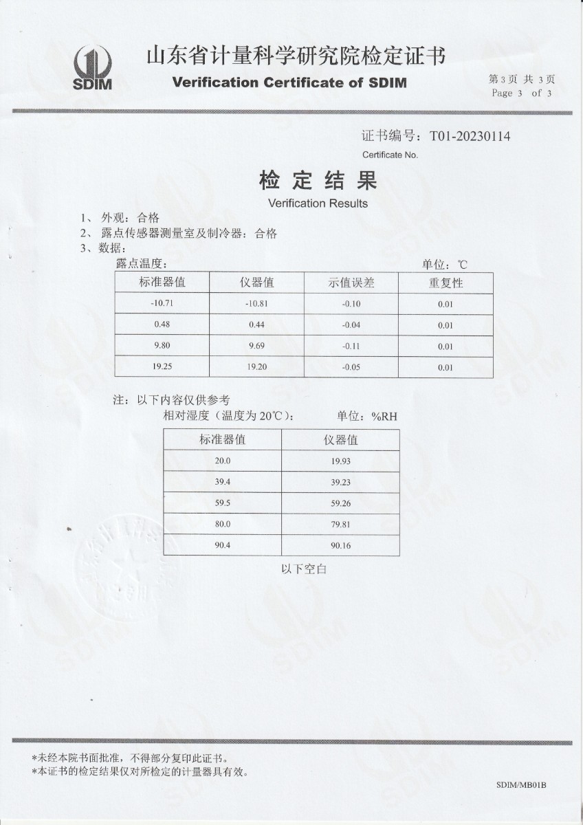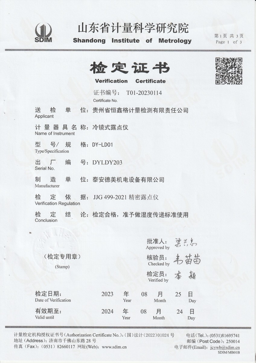 貴州省恒鑫格計量檢測有限責任公司-冷鏡式露點儀檢定證書 2023-9-4 本文被閱讀 8704 次