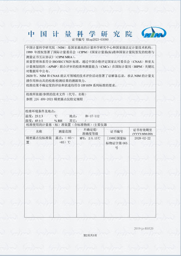 上一條:露點(diǎn)儀檢定證書(shū) | 下一條:超低溫面源黑體爐(-40-80℃)校準(zhǔn)證書(shū) |
