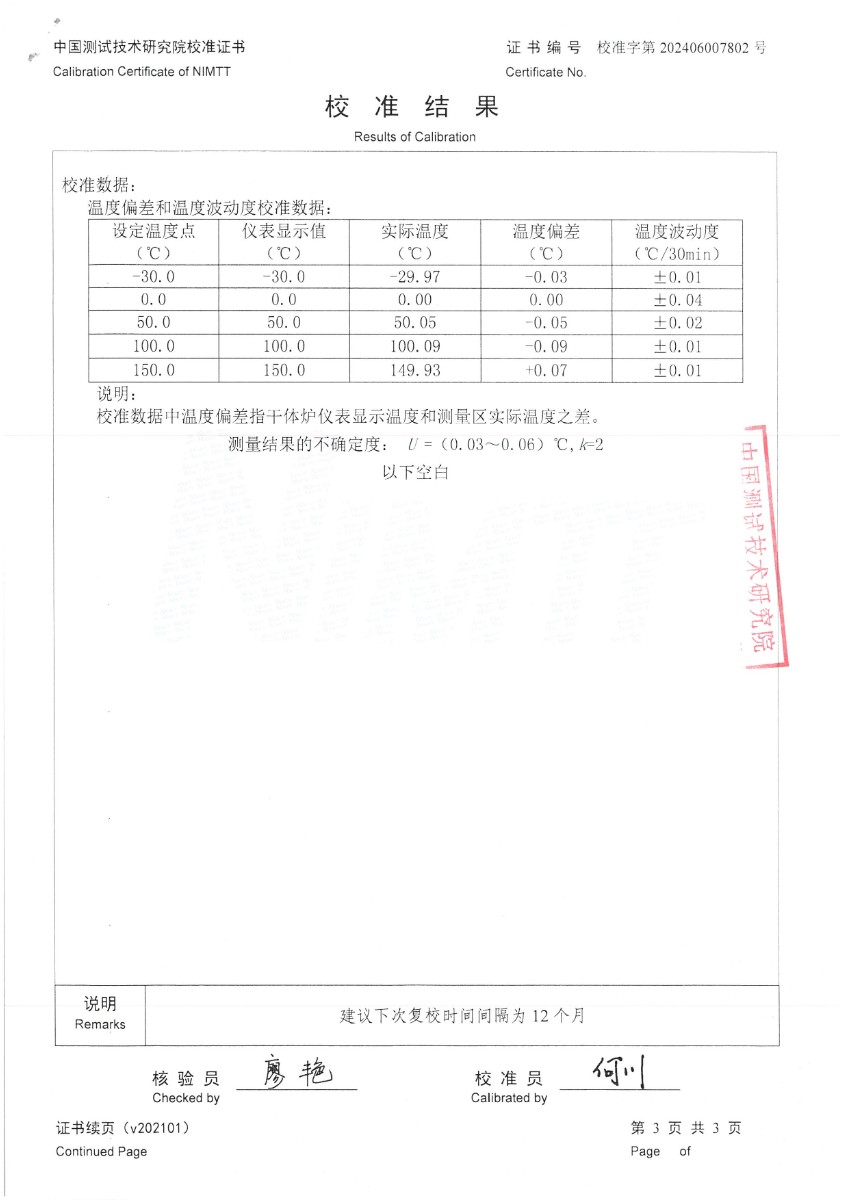 | 上一條:補(bǔ)償導(dǎo)線S分度檢測(cè)報(bào)告 | 下一條:便攜式干體爐(-30-150℃)校準(zhǔn)證書 |